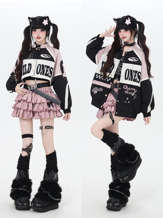 ストリート復古パッチワーク×ライダーズスタジャン(取り外し可能)