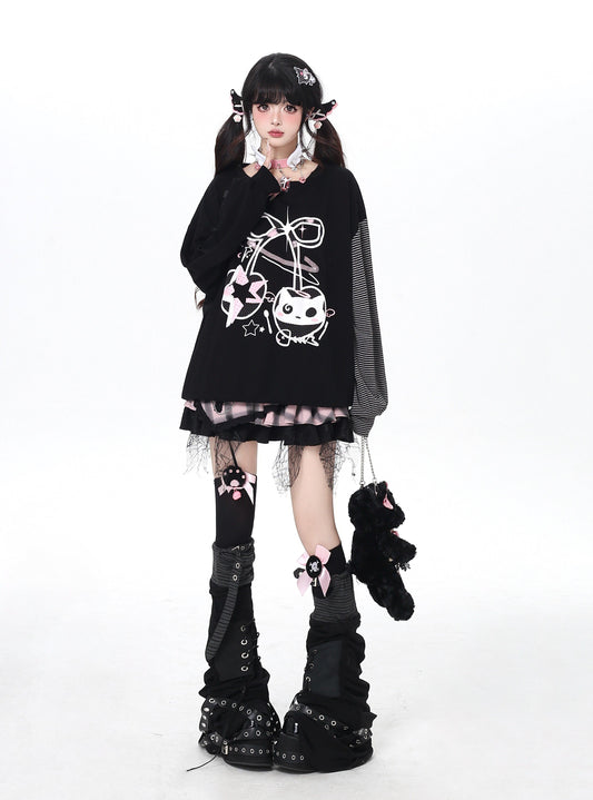ねこ×チェリーボーダーゆるT