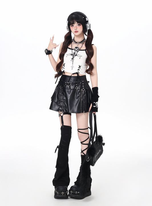 Y2Kギャル ジップデザインティアードミニスカート