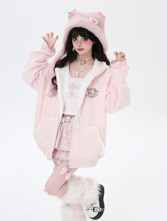 🐱ドット×キャット刺繍パーカー|ガーリーゆるモード
