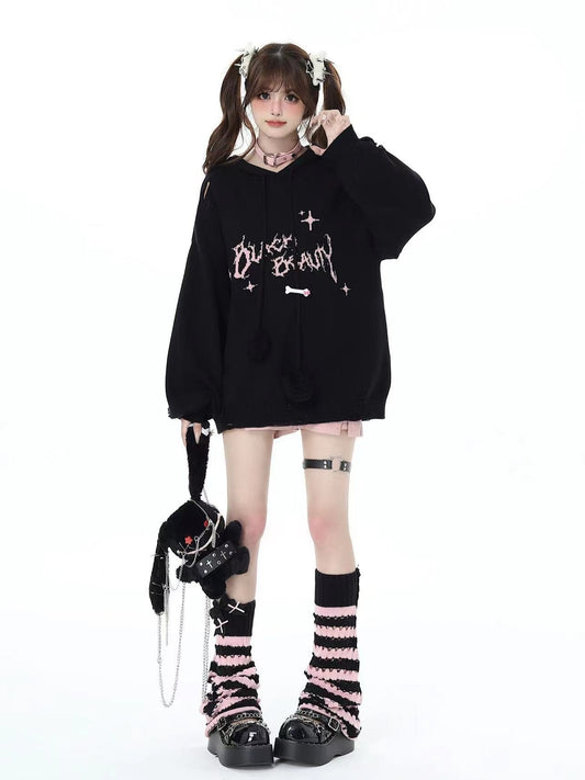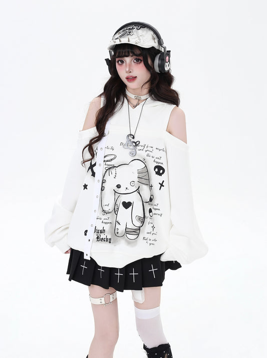闇かわうさ耳オフショルゆるパーカー秋冬