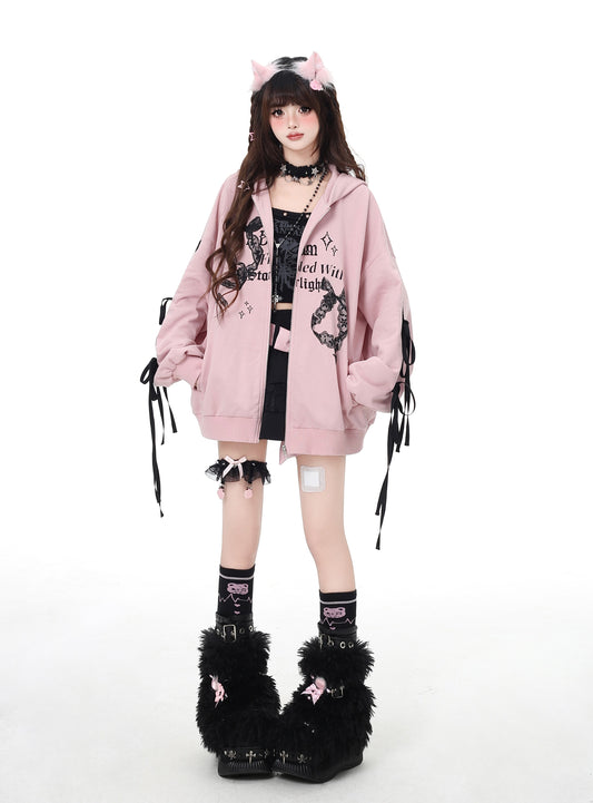 蝶結びデザイン ゆるシルエット フード付きパーカー