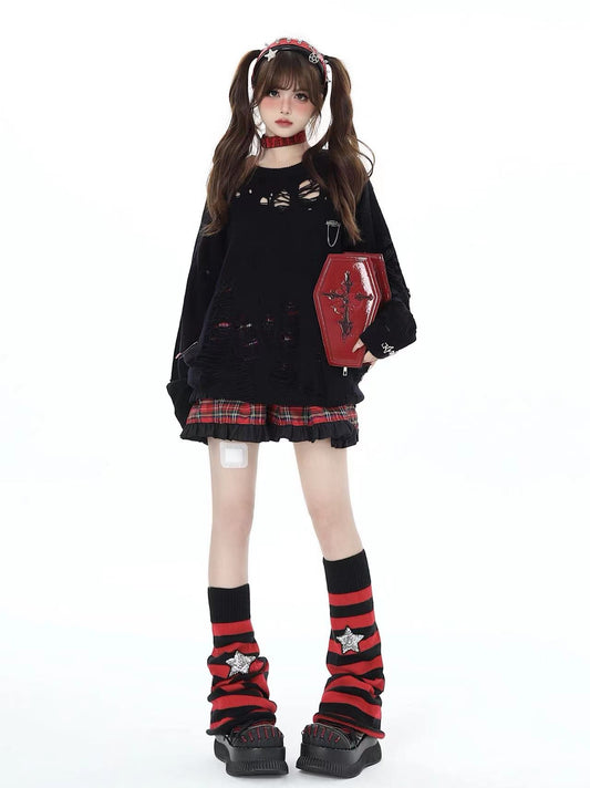 Red and black striped star pattern loose socks