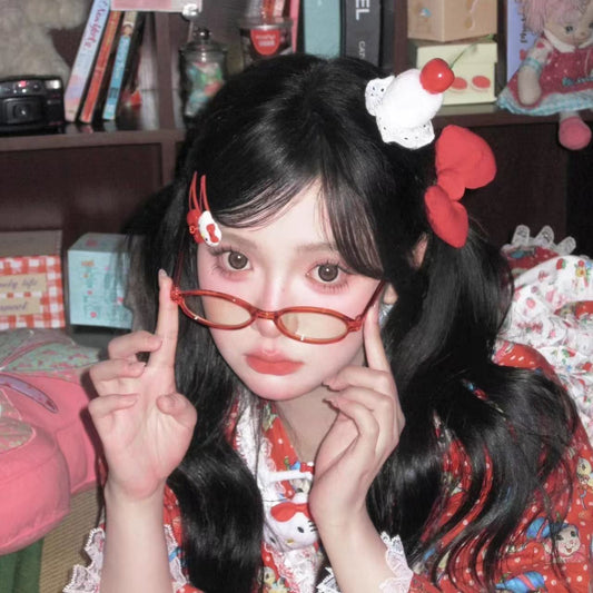 🍓ストロベリーケーキ風🎀レッドリボン付きファーボールヘアクリップ