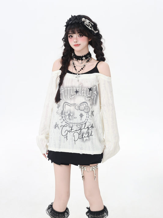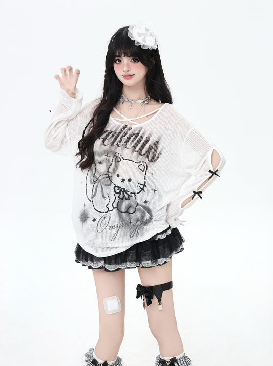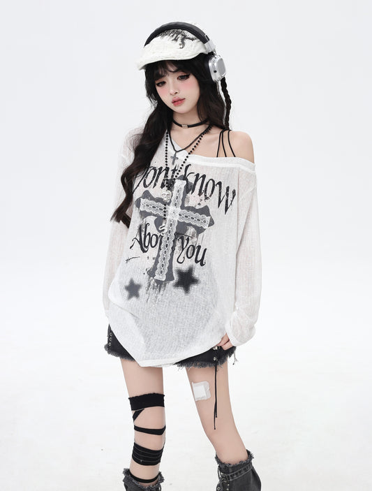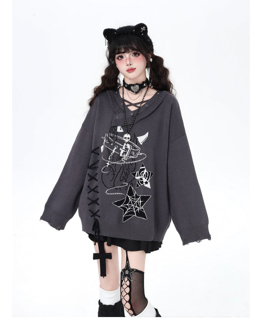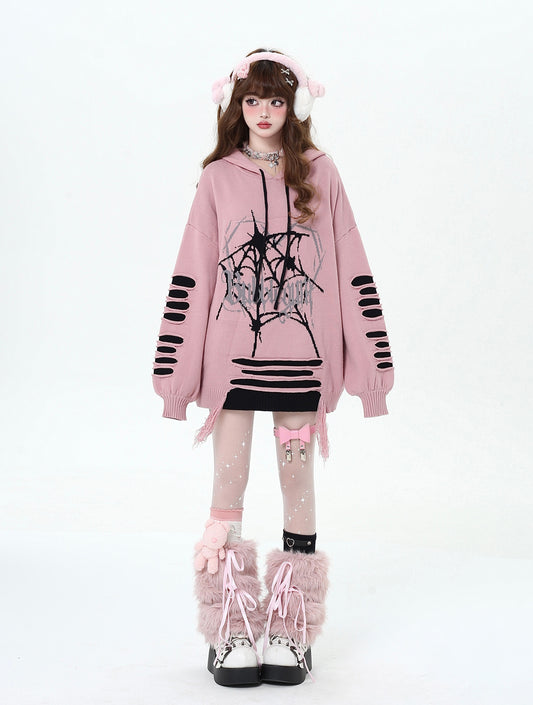 <tc>On Sale</tc>Spider web and star pattern knit sweater