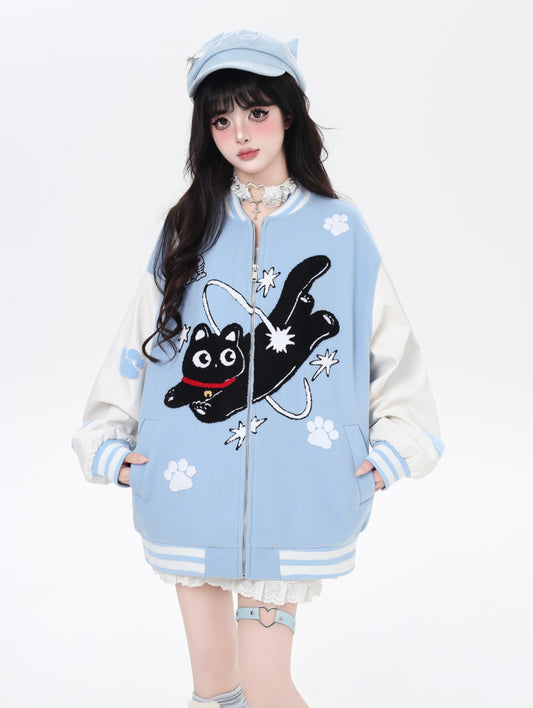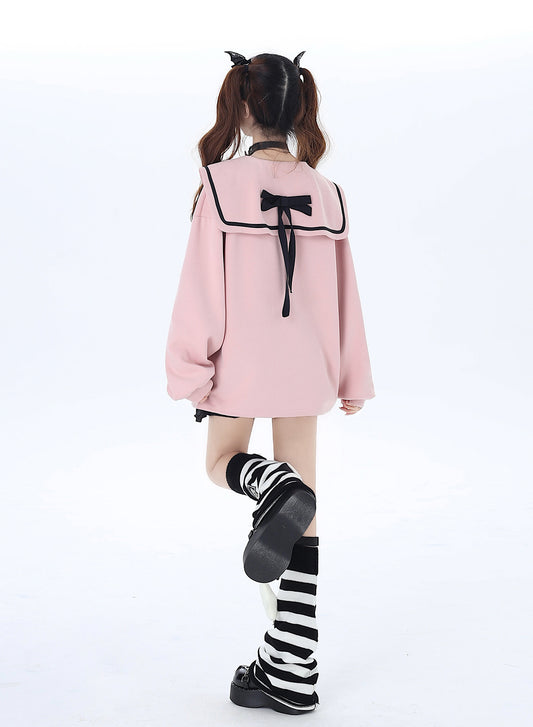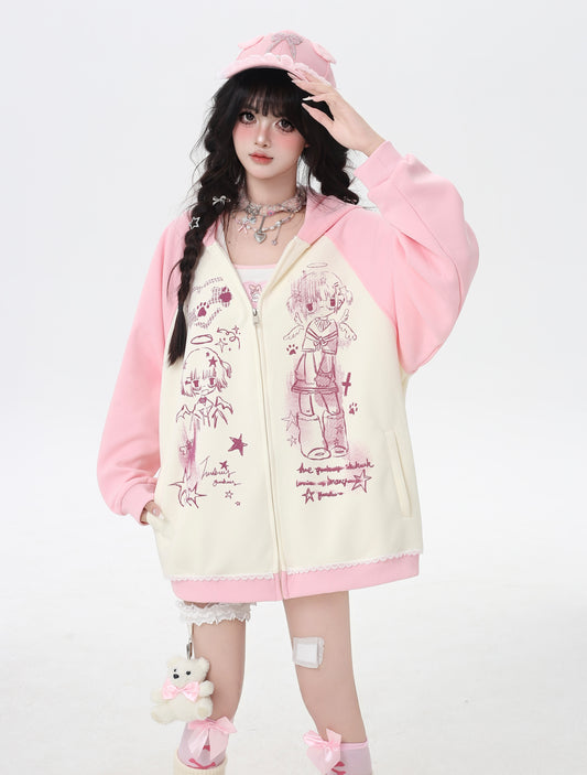 サブカル漫画プリント配色ゆるパーカー秋新作