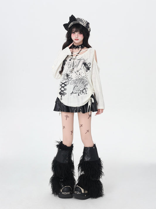 ゴシックスカル黒白ボーダーレッグウォーマー