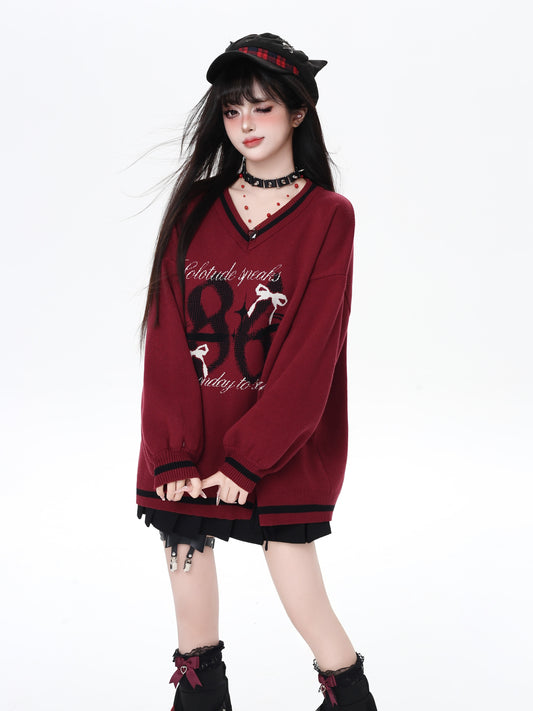 スクール風Vネックゆるニット