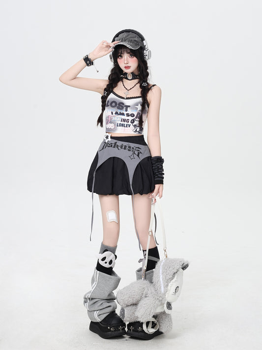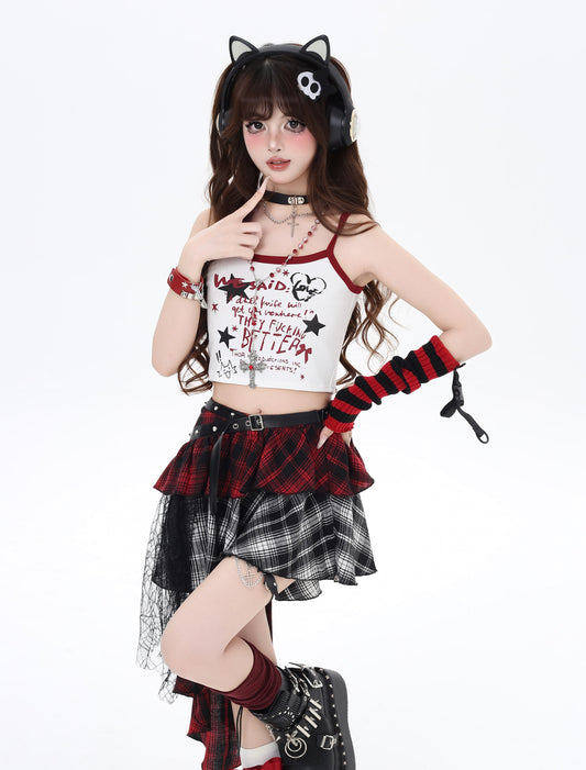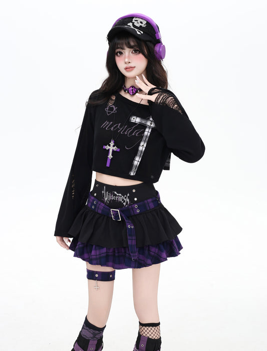ゴス皮ベルト×レイヤード風プリーツスカート