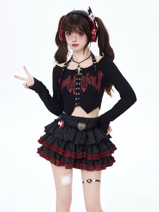 フェイクレイヤード×ホルターネック💘ギャルチェックトップス