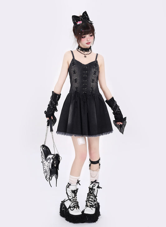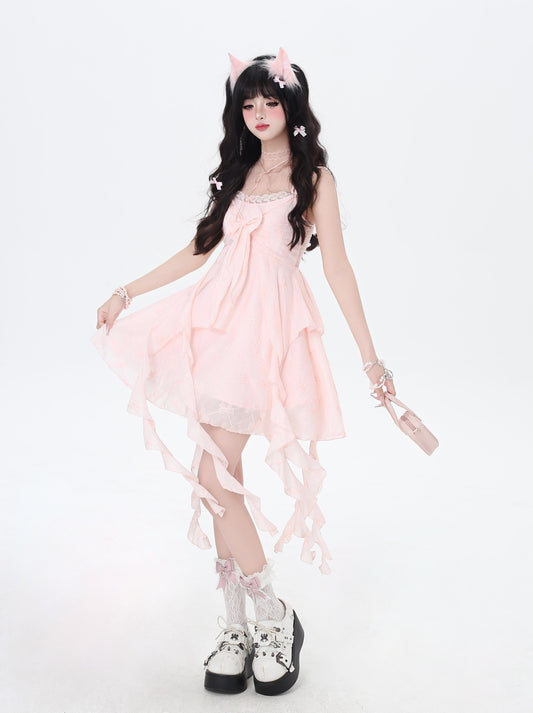 リボンストラップ×南国ムードワンピ|甘めサブカルバカンスコーデ
