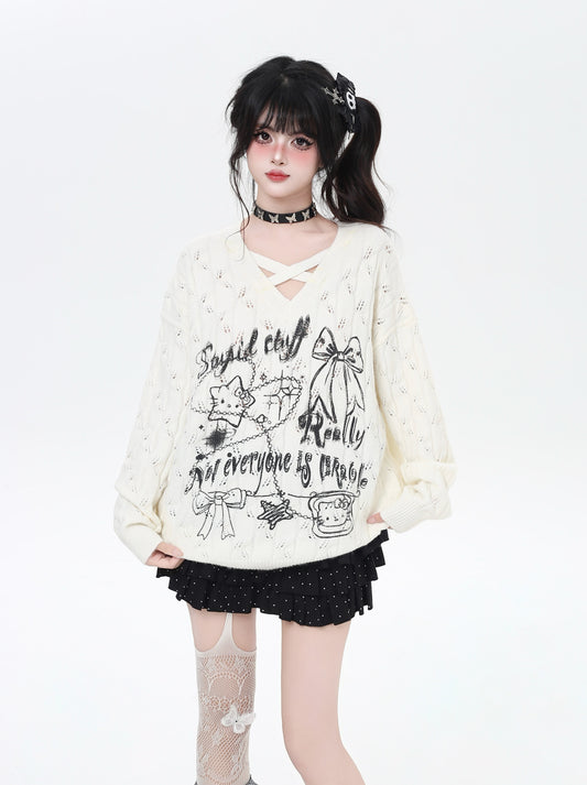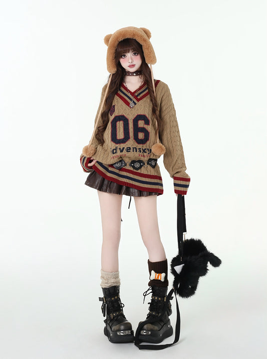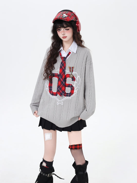 レトロ学園風☆刺繍レイヤード風ゆるニット