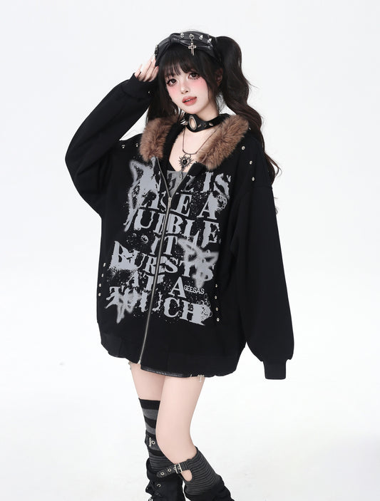 レトロストリート ファー襟 オーバーサイズジャケット 秋アウター