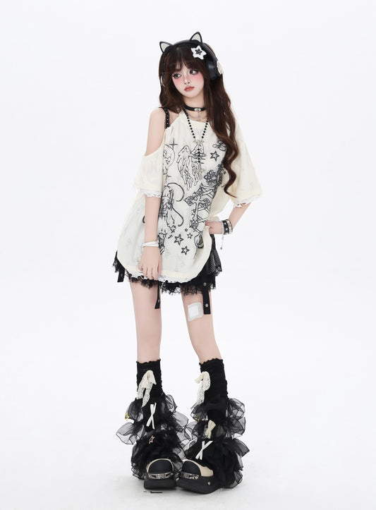 ミレニアル星柄×レイヤード ドローストリングロンT