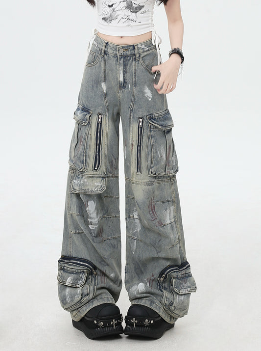 ペイント加工ストリートパンツ/グランジ風ユニセックス