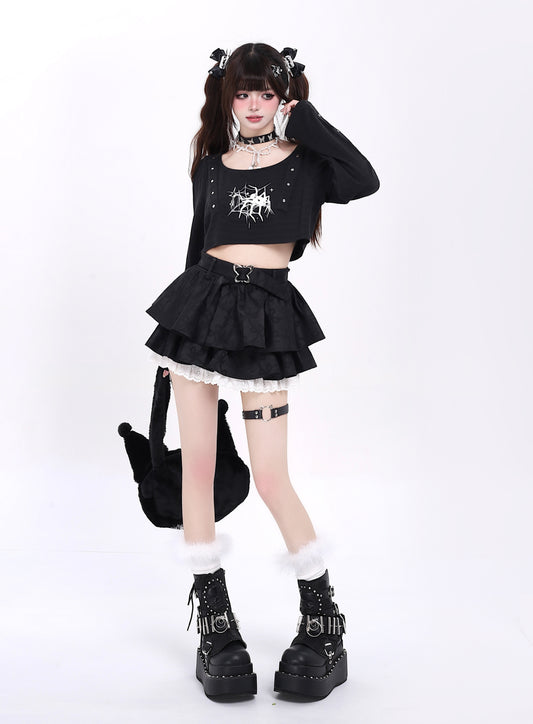 モノトーン音符プリーツスカート|ガーリーケーキライン