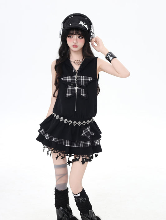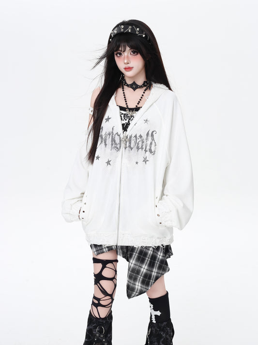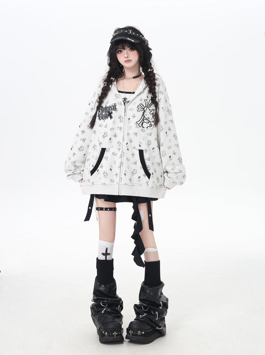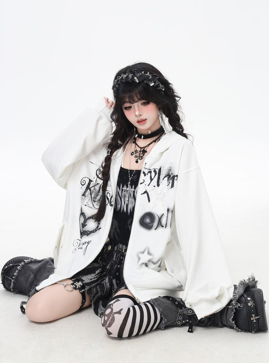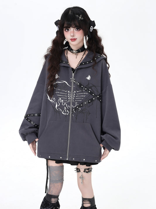 地雷系ダーク系初秋ジップパーカー ニッチギャル服