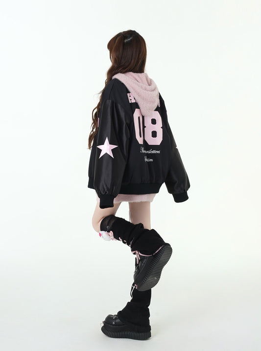 <tc>On Sale</tc>星星刺繍のオーバーサイズボンバージャケット・中綿入りで厚手