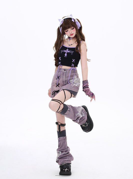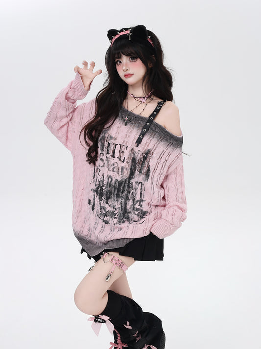 地雷系甘辛肩出しダメージ切替パーカーゆるシルエット