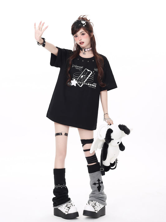 毛羽立つ蝶のレースデザイン甘クールオーバーサイズTシャツ
