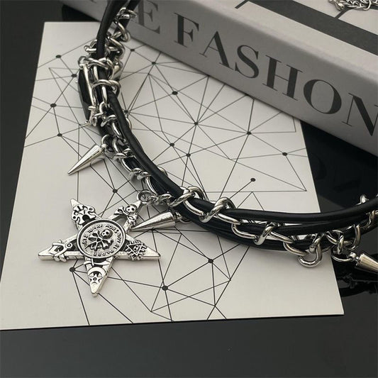 Large Five-Pointed Star Skeleton Scalp Clasp Necklace