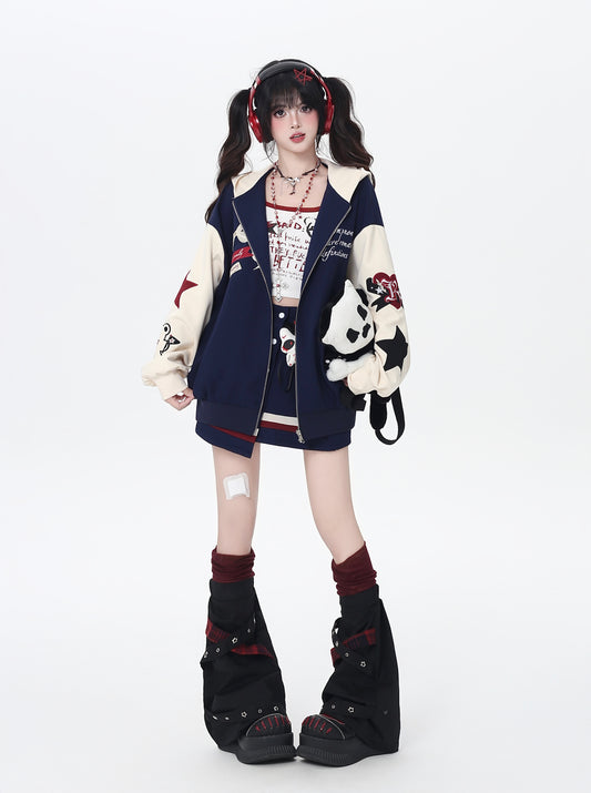 くま刺繍ストリートブルゾン|ゆる甘カジュアルアウター