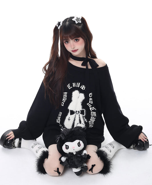 うさ耳ガール刺繍♡萌え袖だぼニット