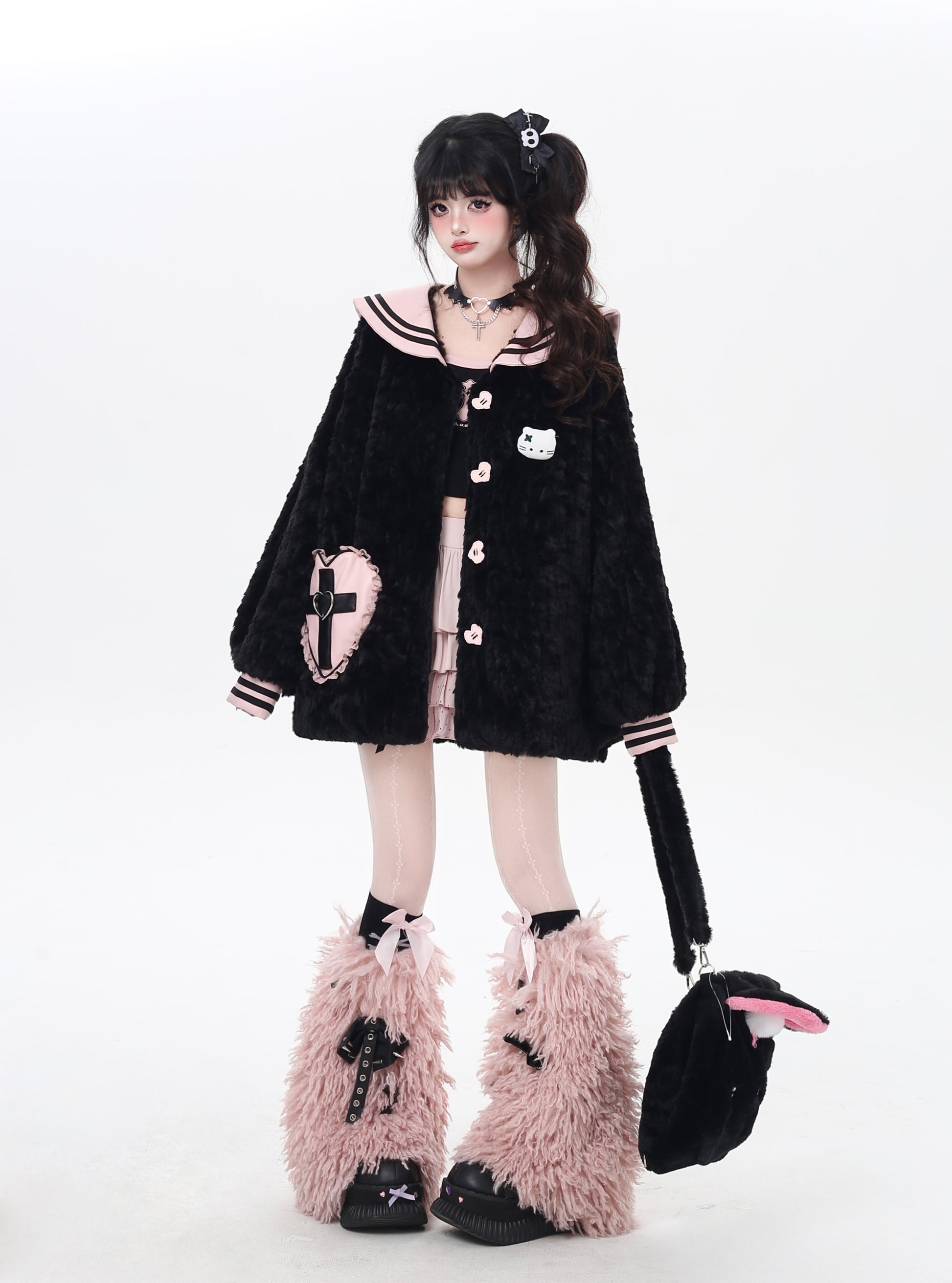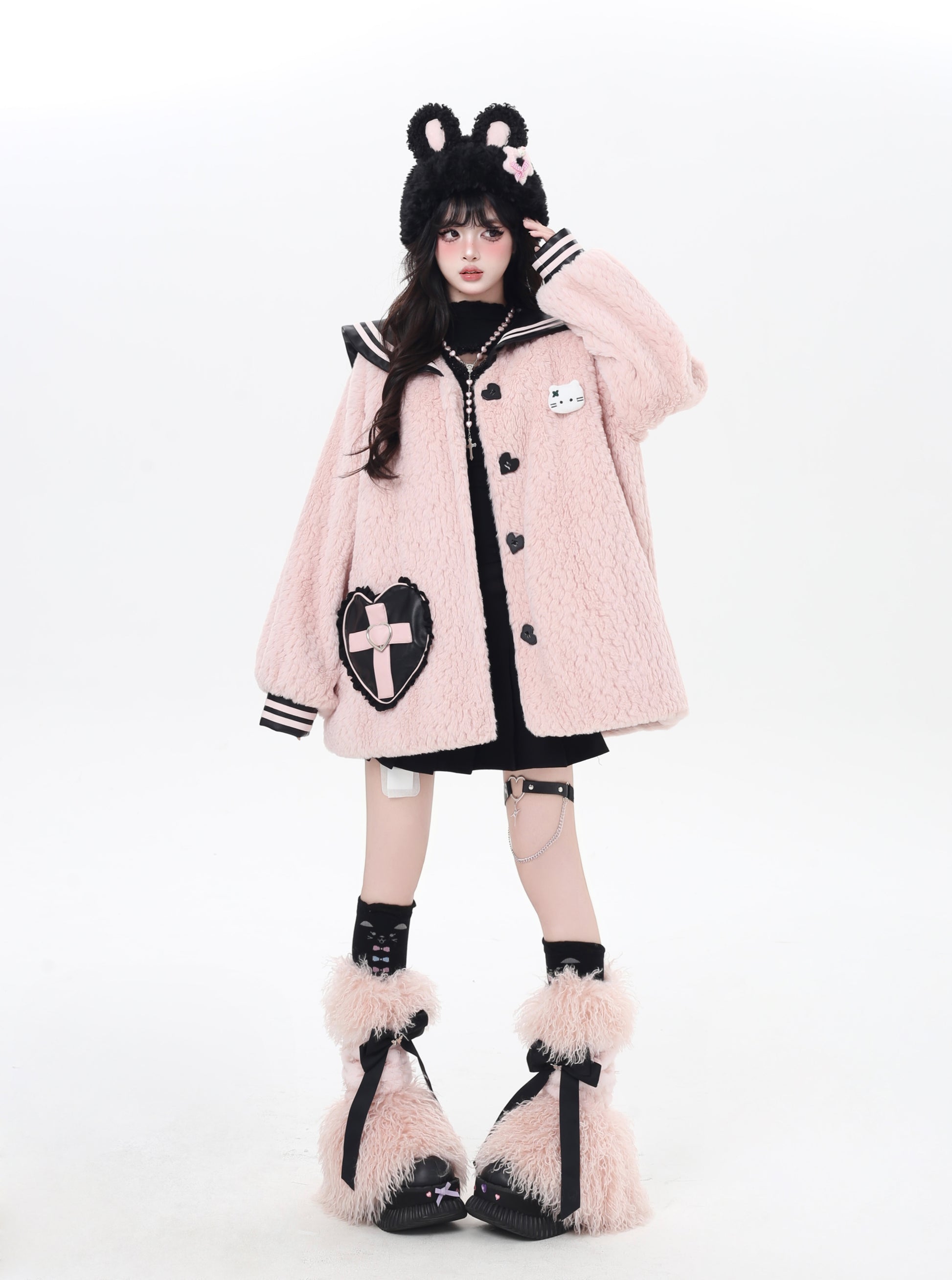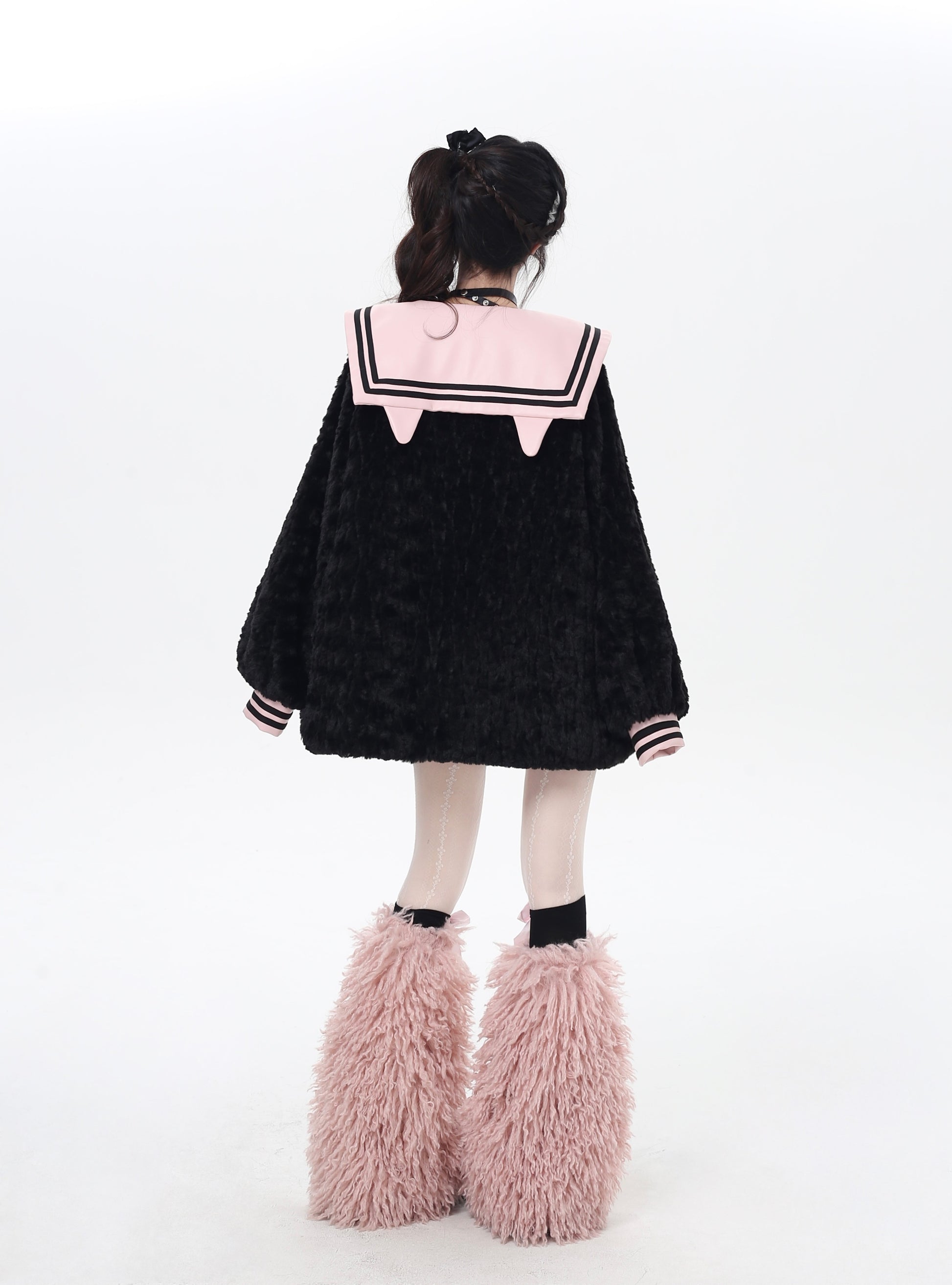 セーラー風襟とランタンスリーブで甘辛ミックス、冬の地雷系コーデにぴったりな一枚。