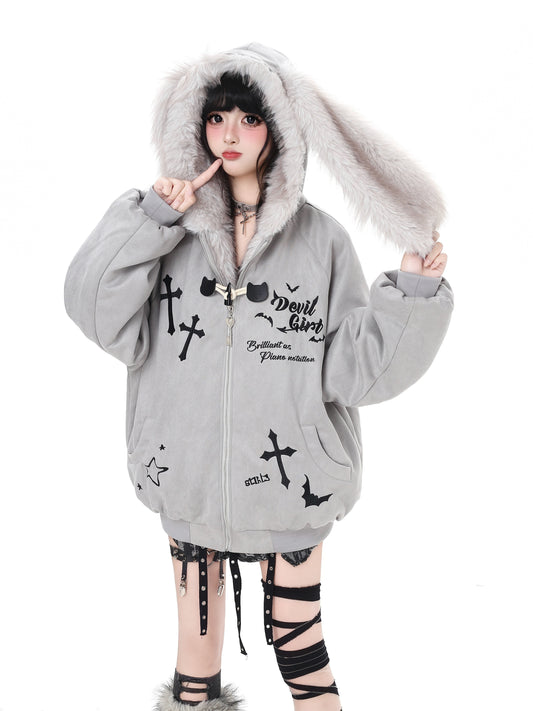悪魔バニー×ふわもこムートン中綿コート