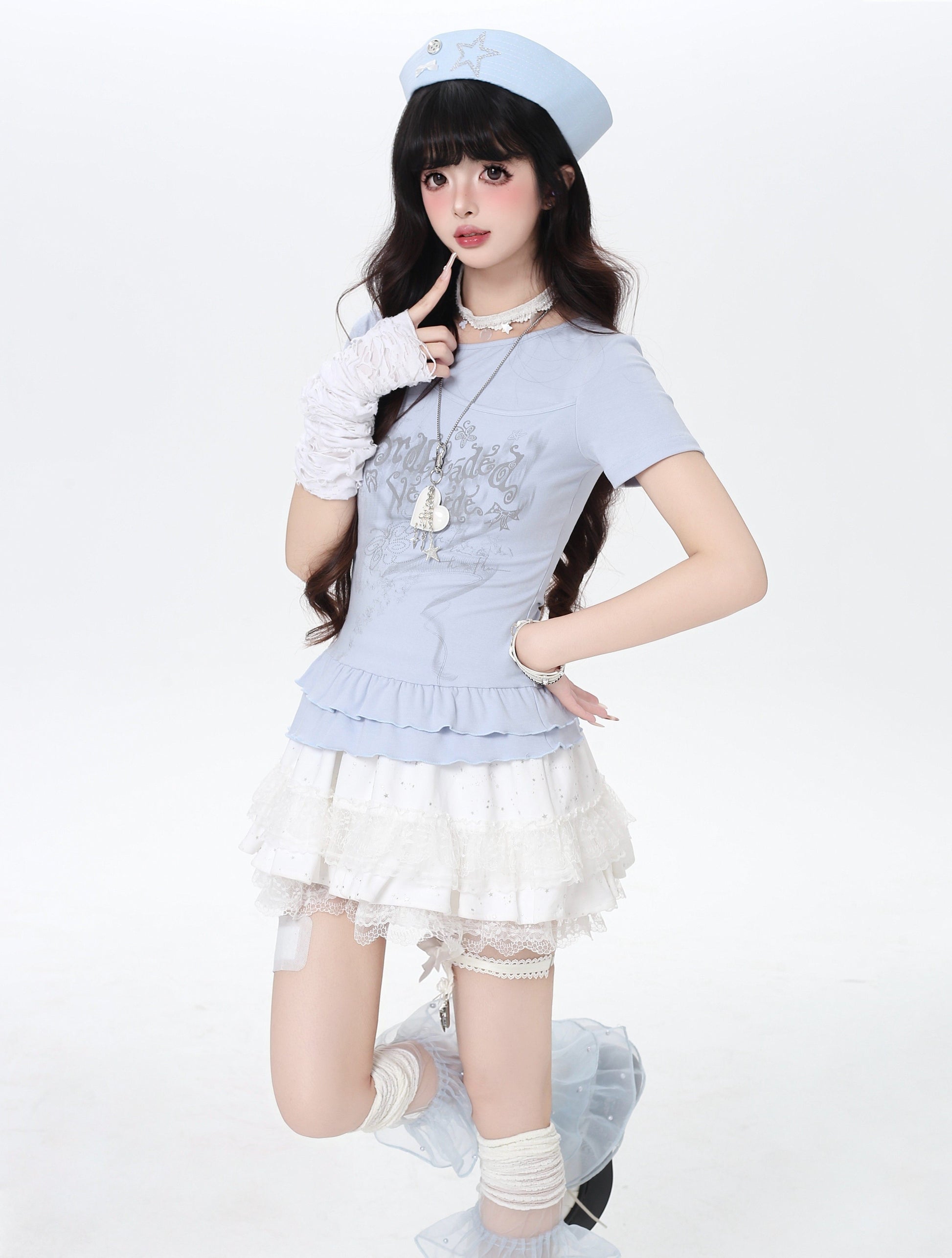 <tc>On Sale</tc>サイドリボン付き3段レースケーキスカート
