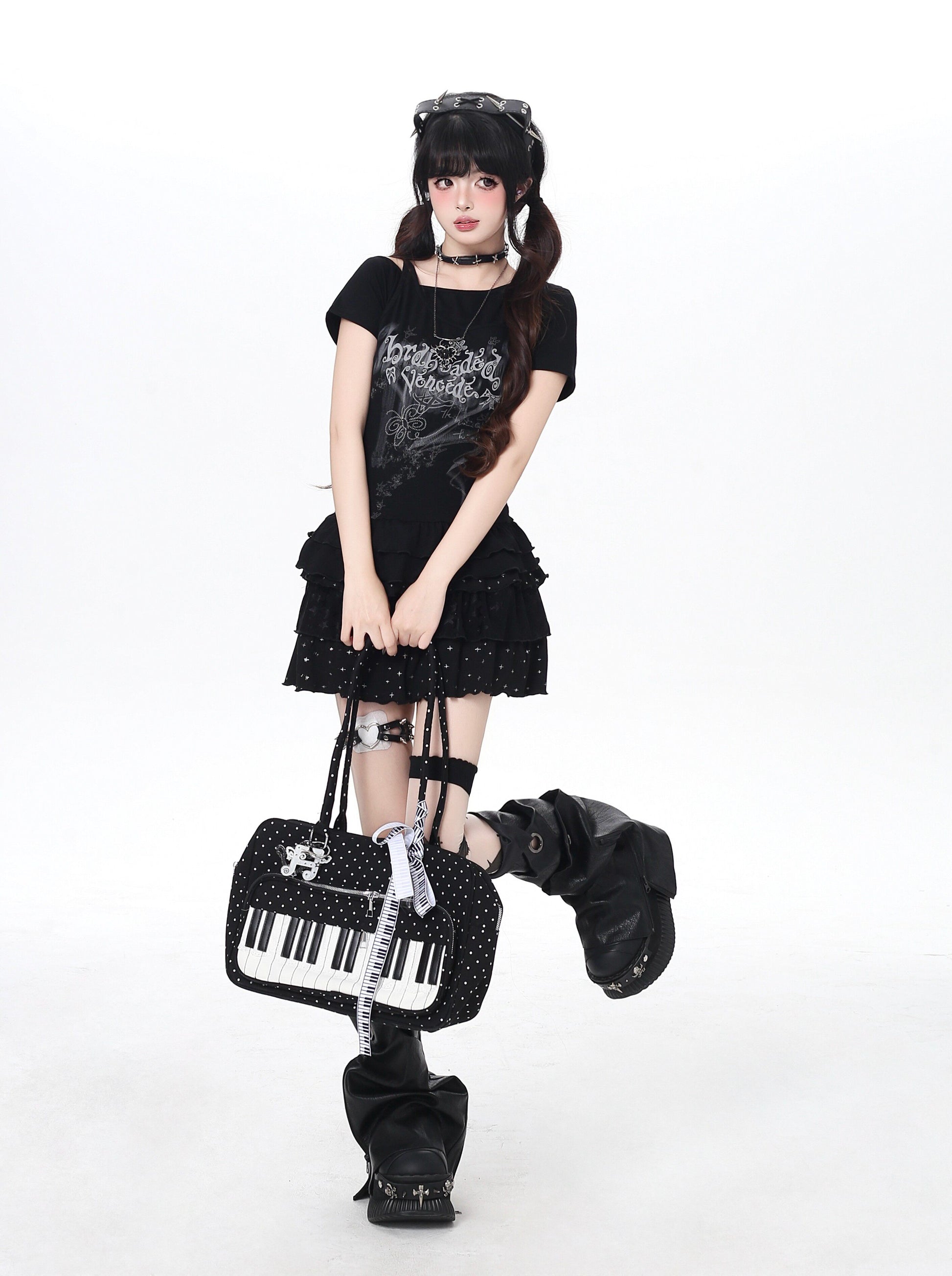 ゴシックアイドル風チェックティアードスカート