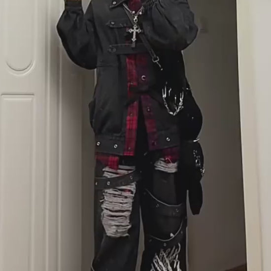 レイヤード風のデザインとリボンモチーフが可愛いデニムジャケット🖤