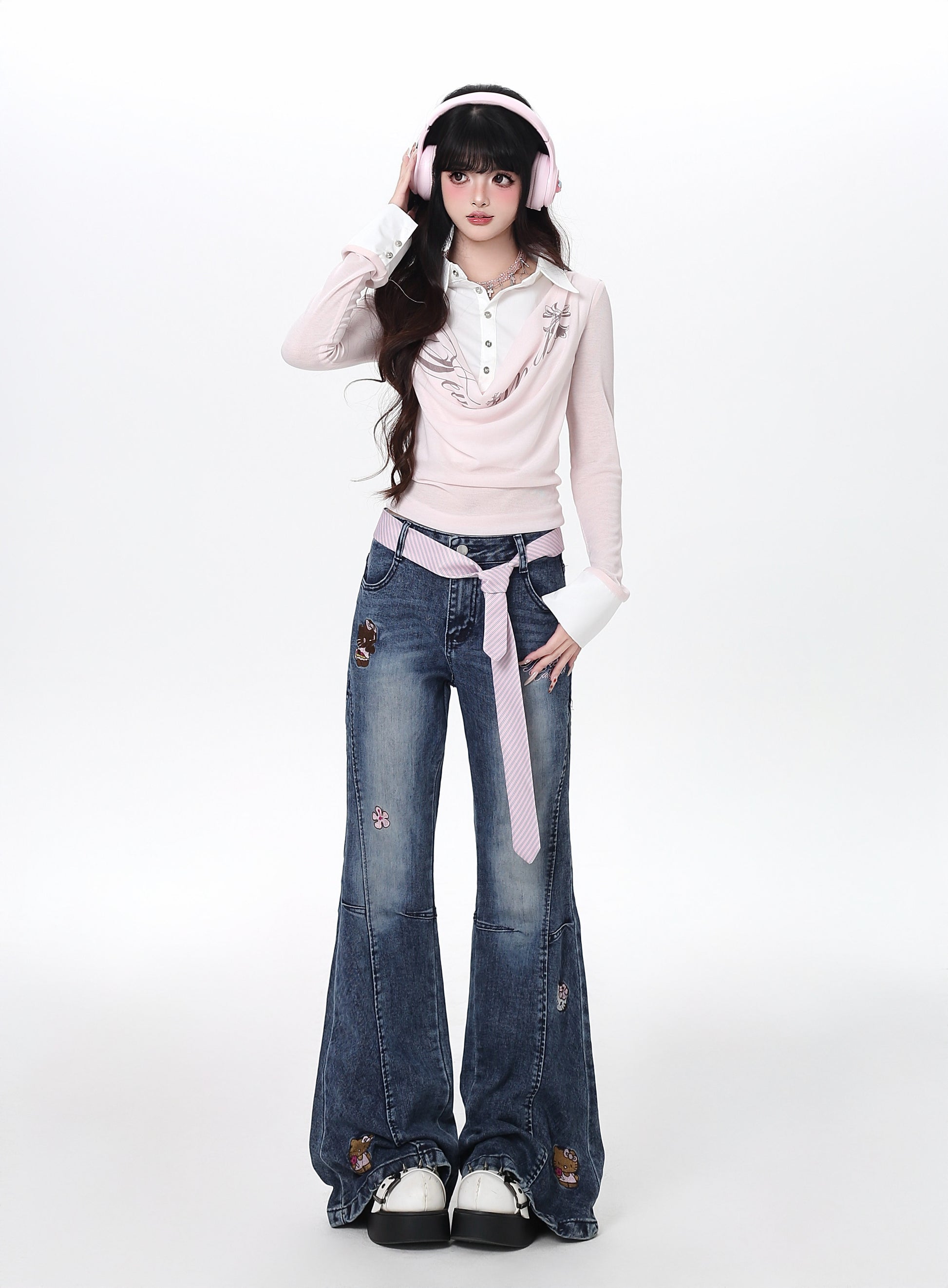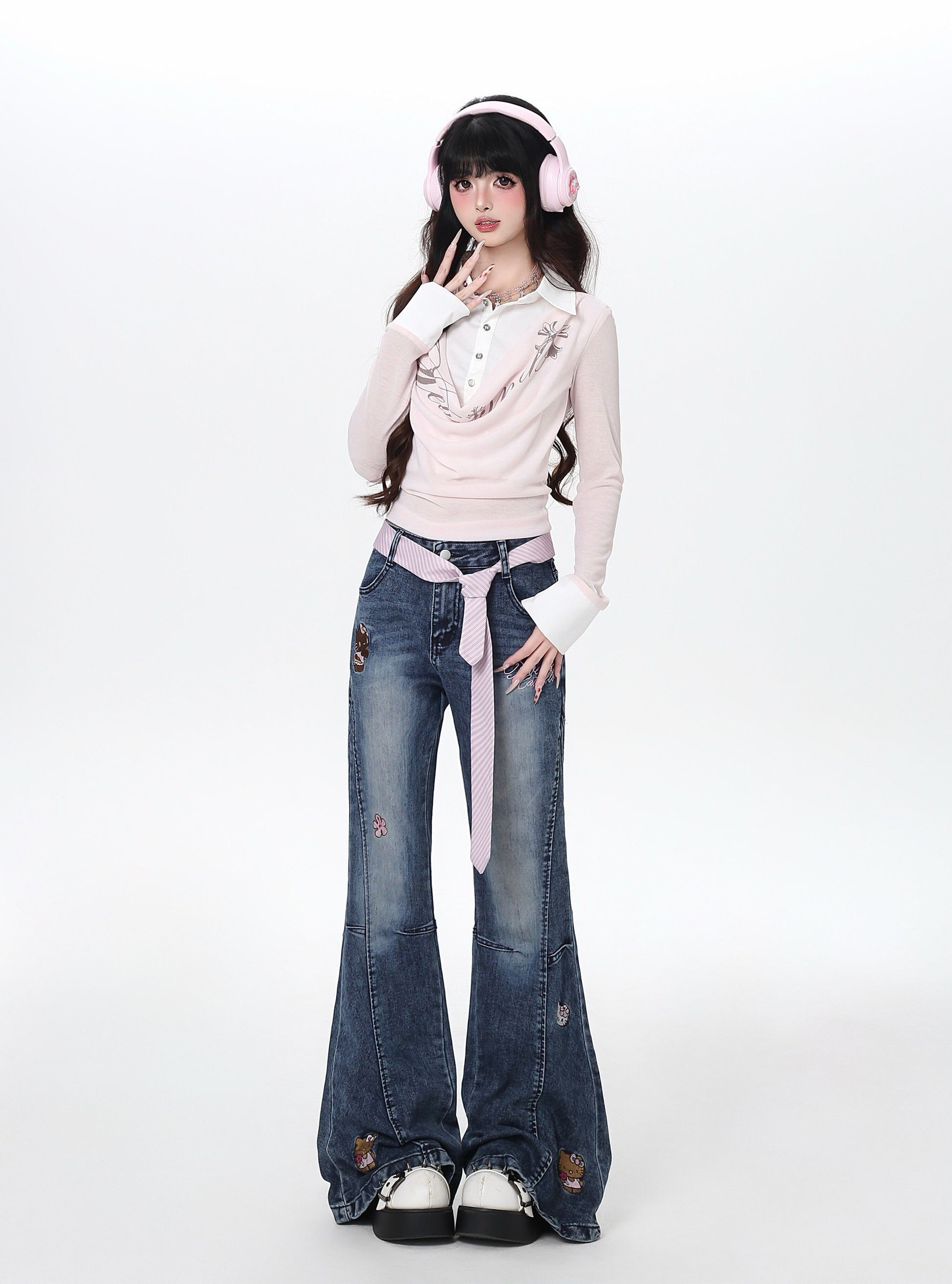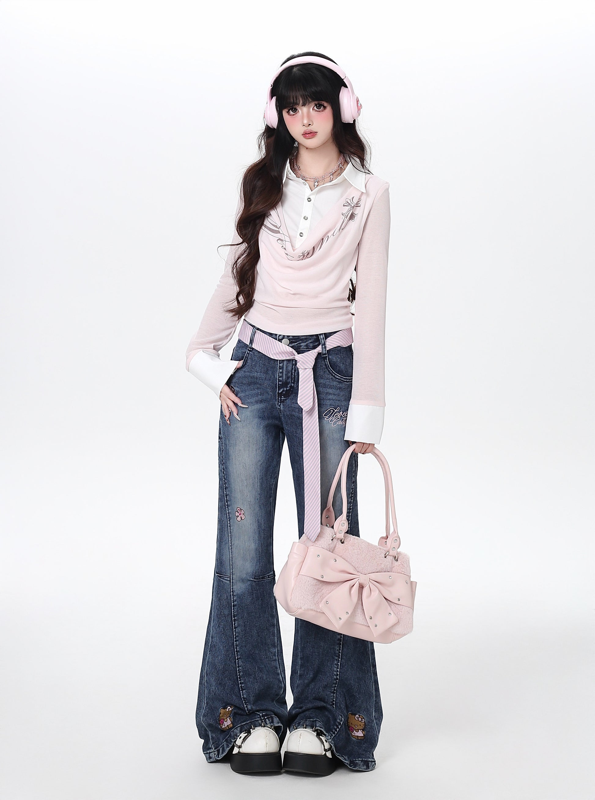 立体リボン×Y2Kハイウエストフレアデニム