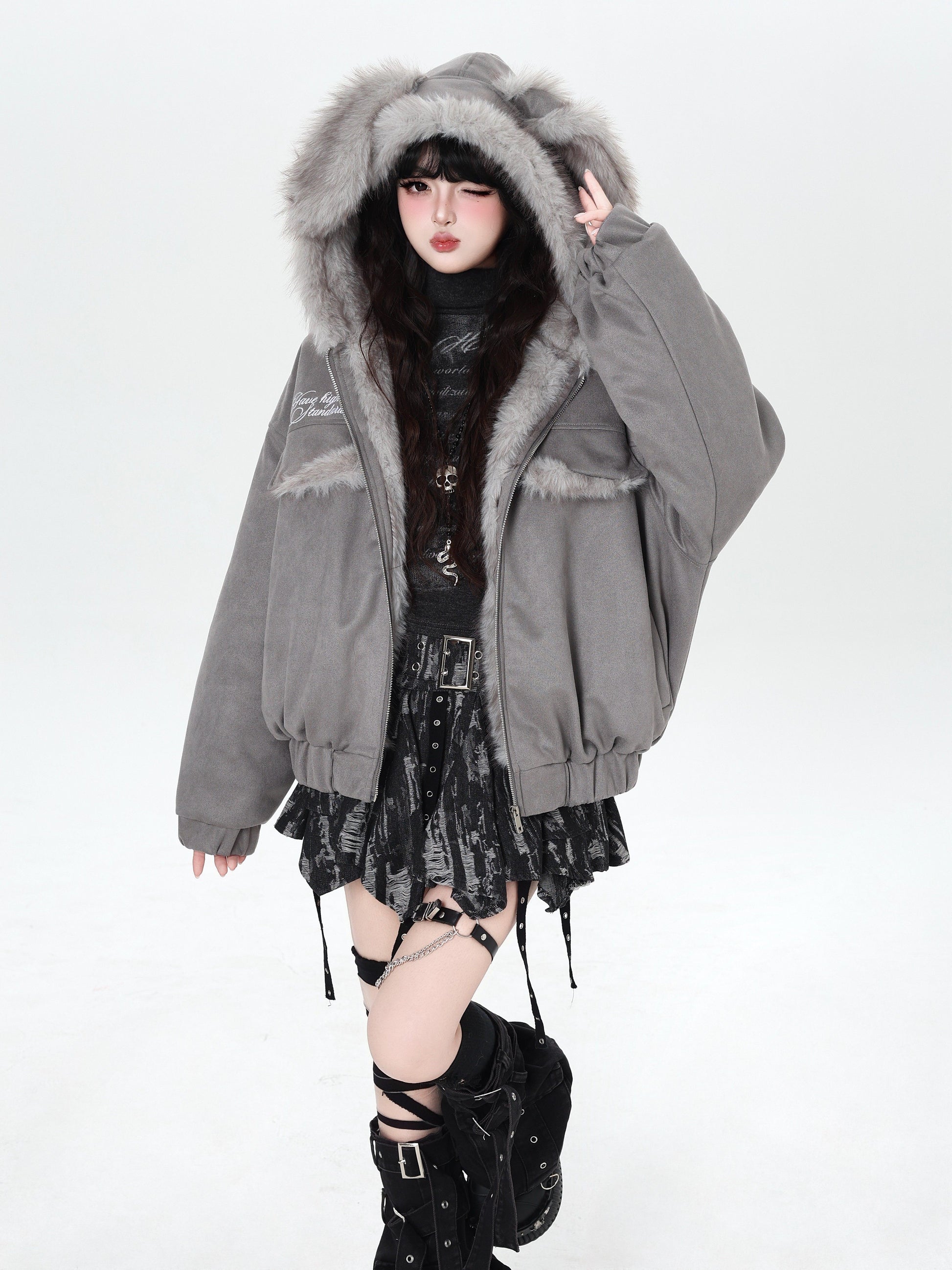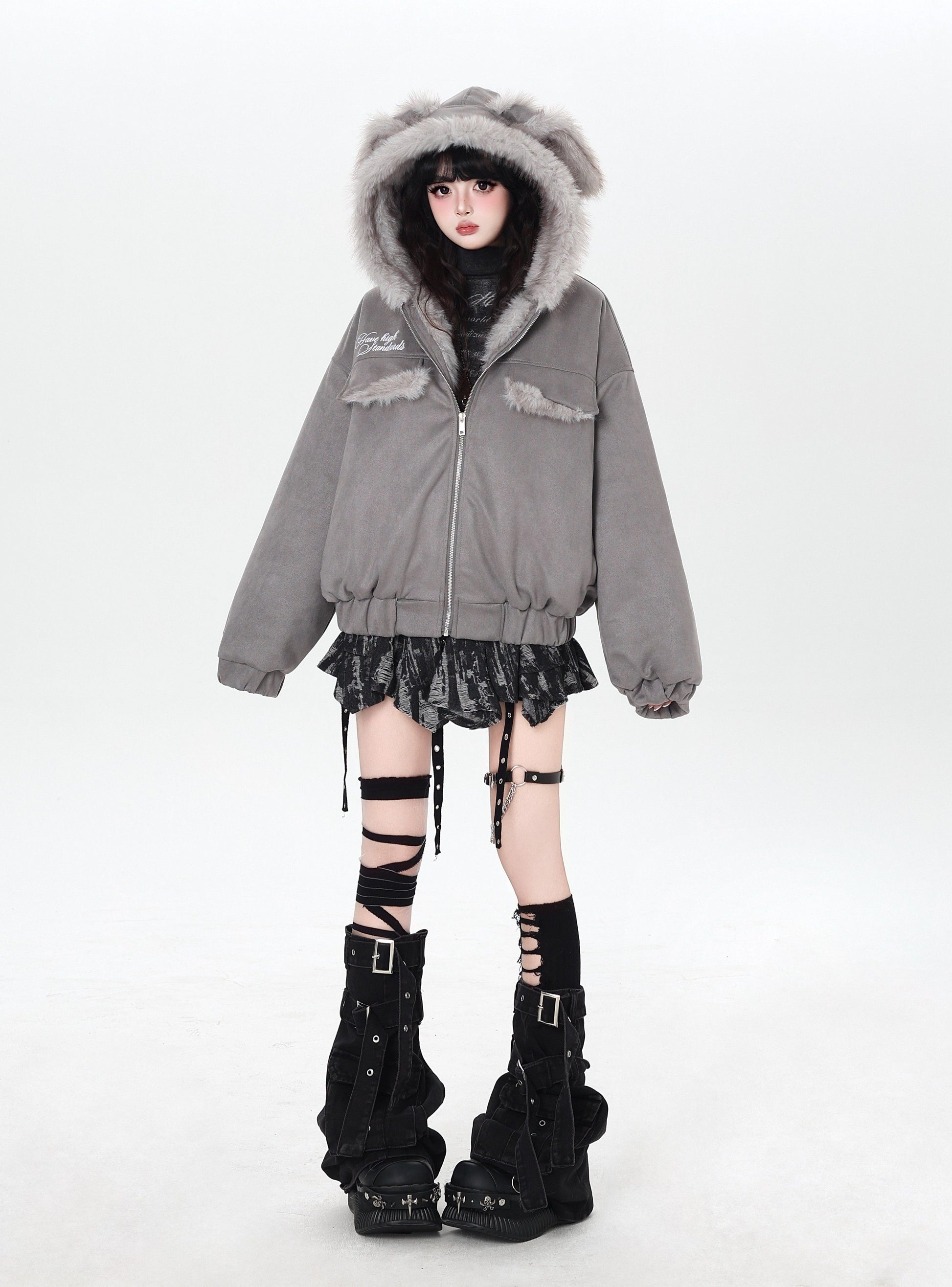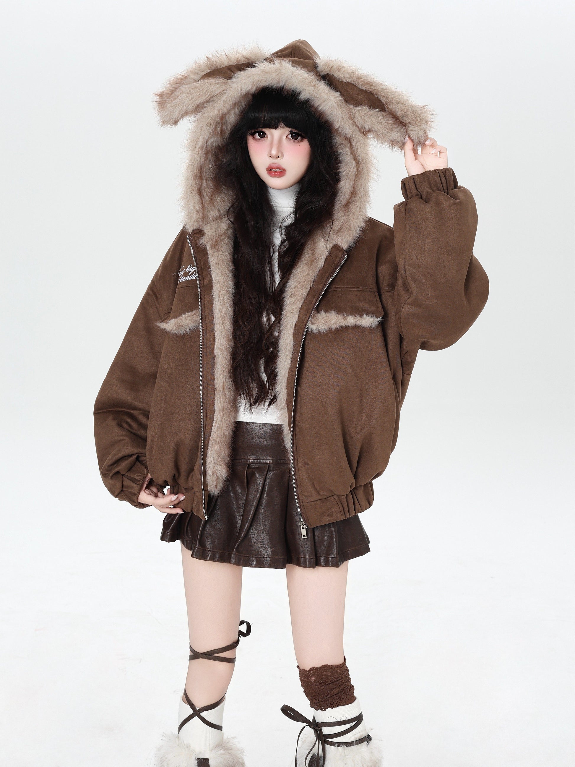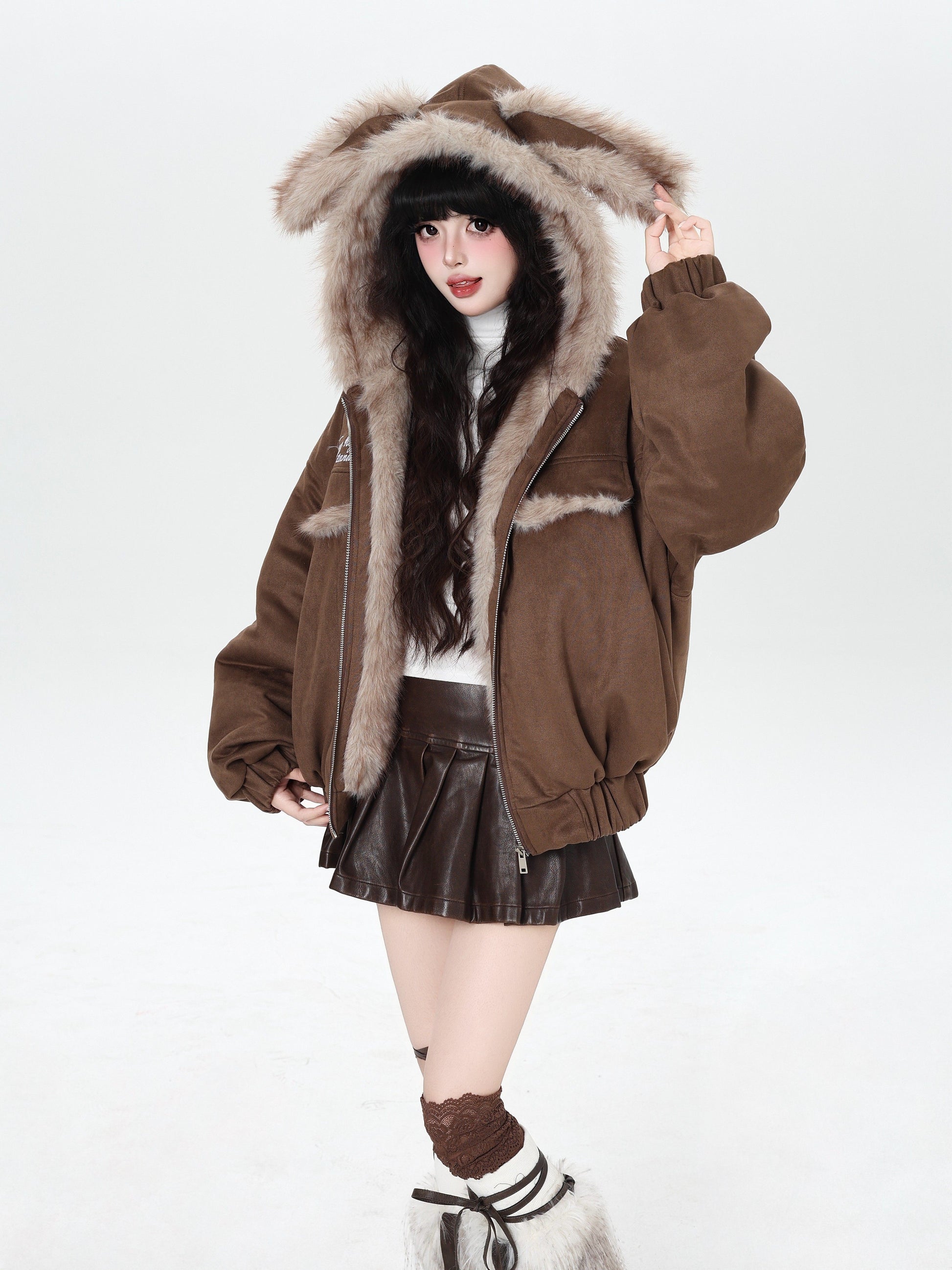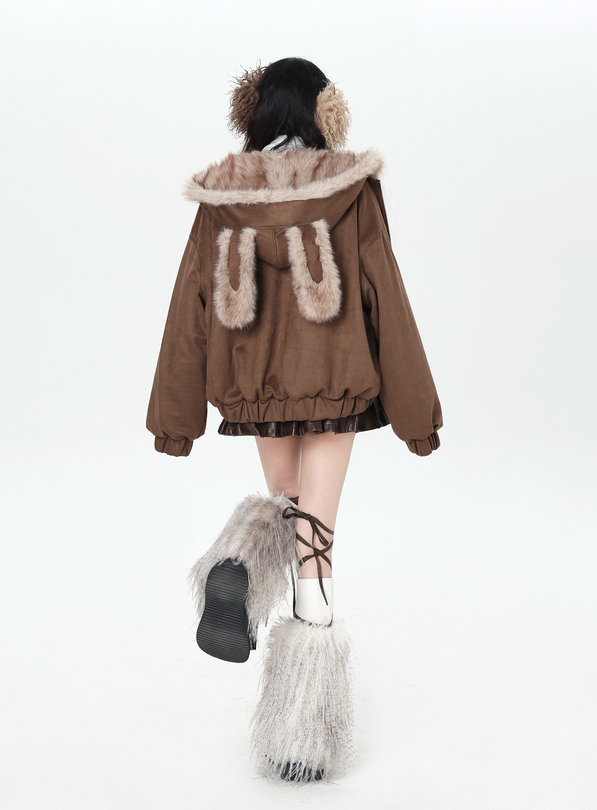ゆる地雷ふわもこ猫耳スエード中綿アウター