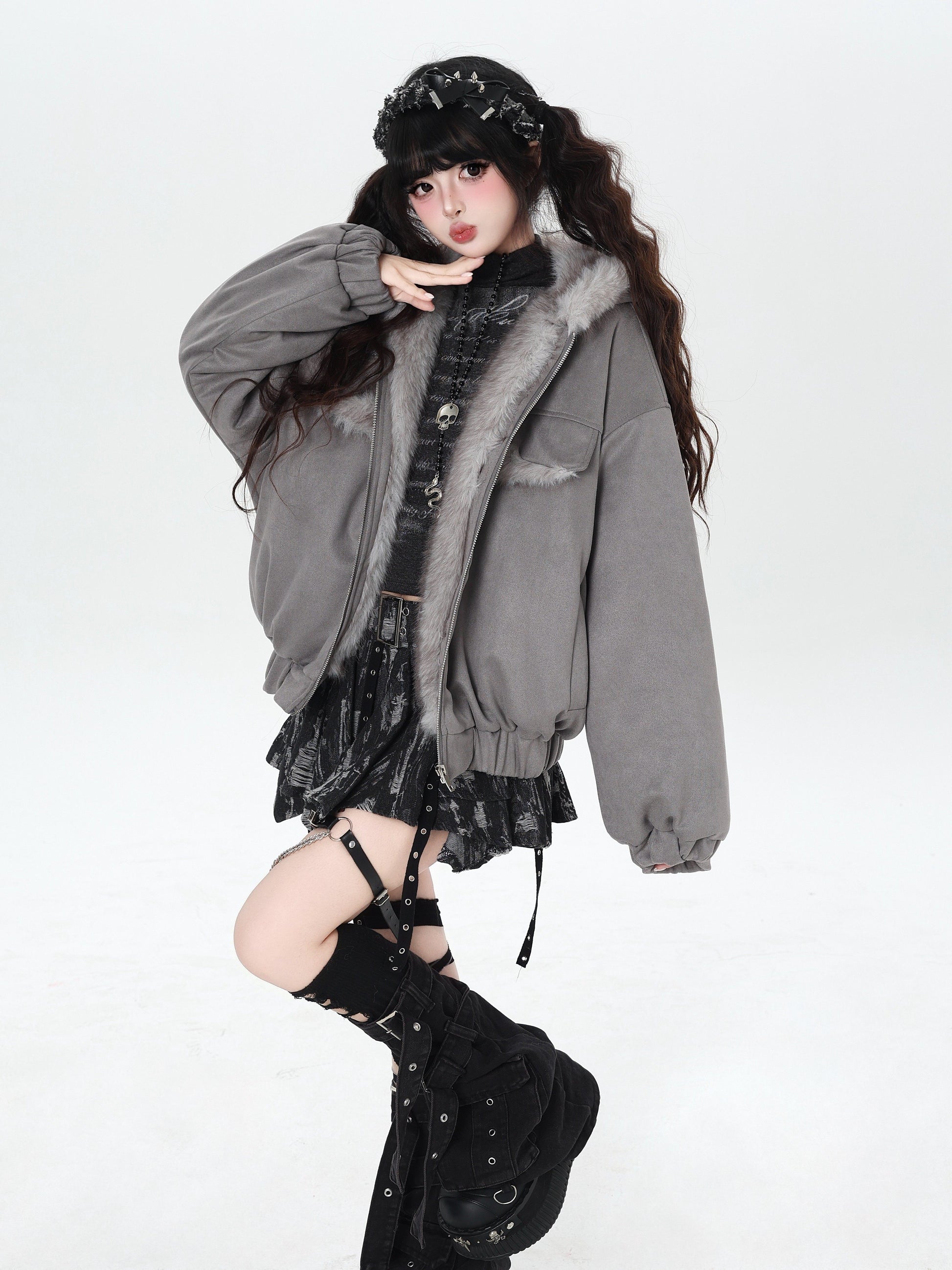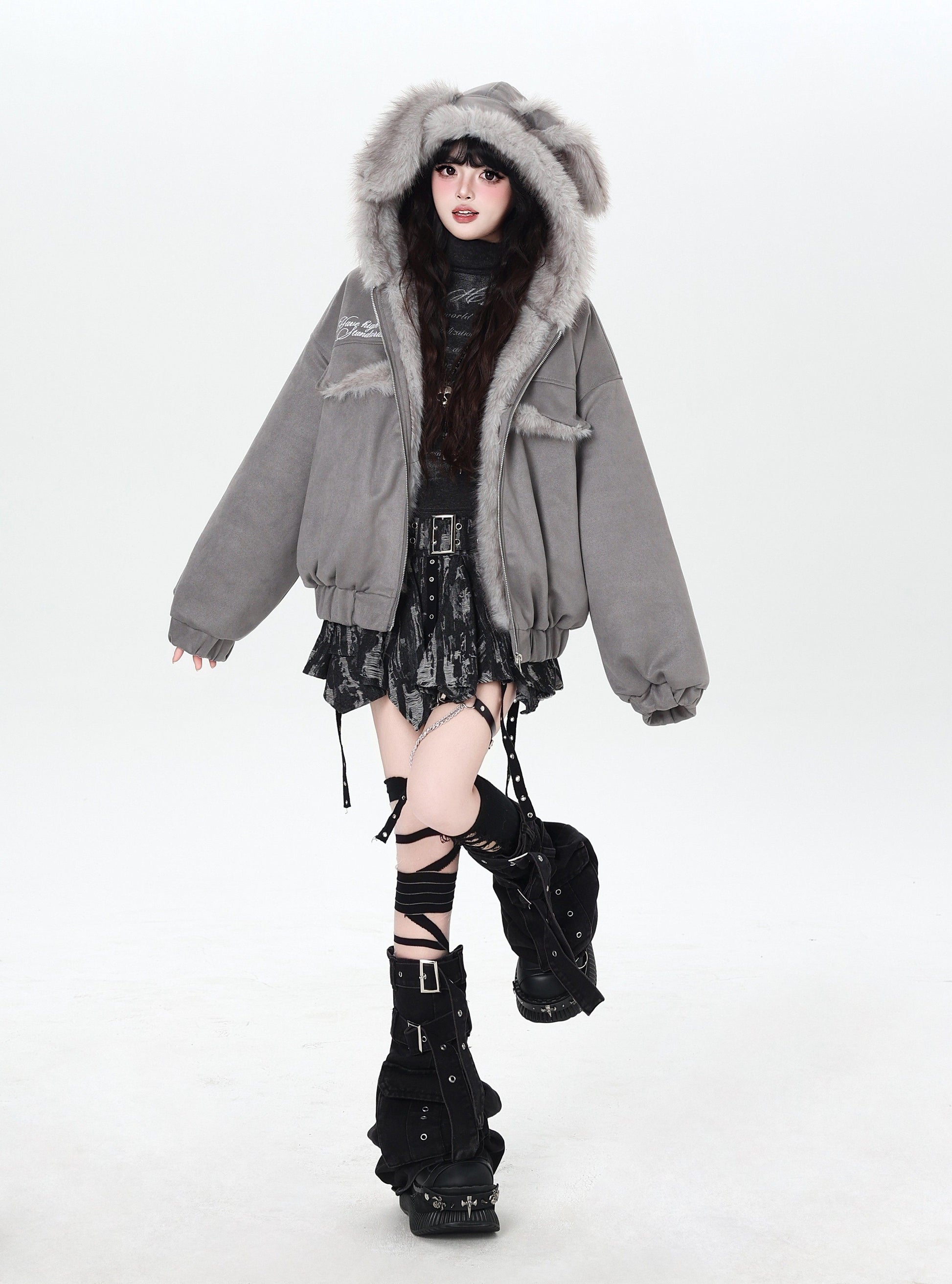悪魔バニー×ふわもこムートン中綿コート