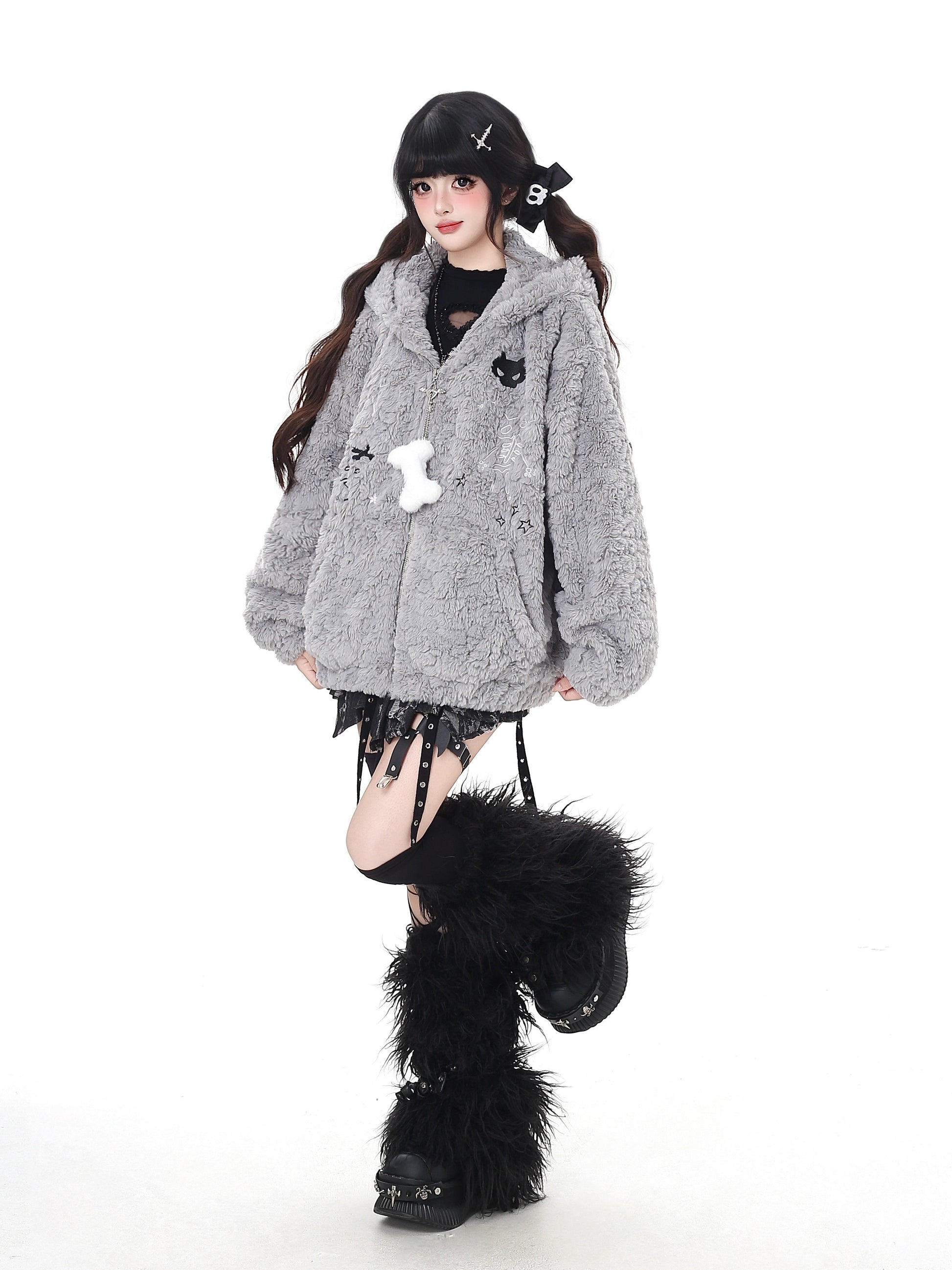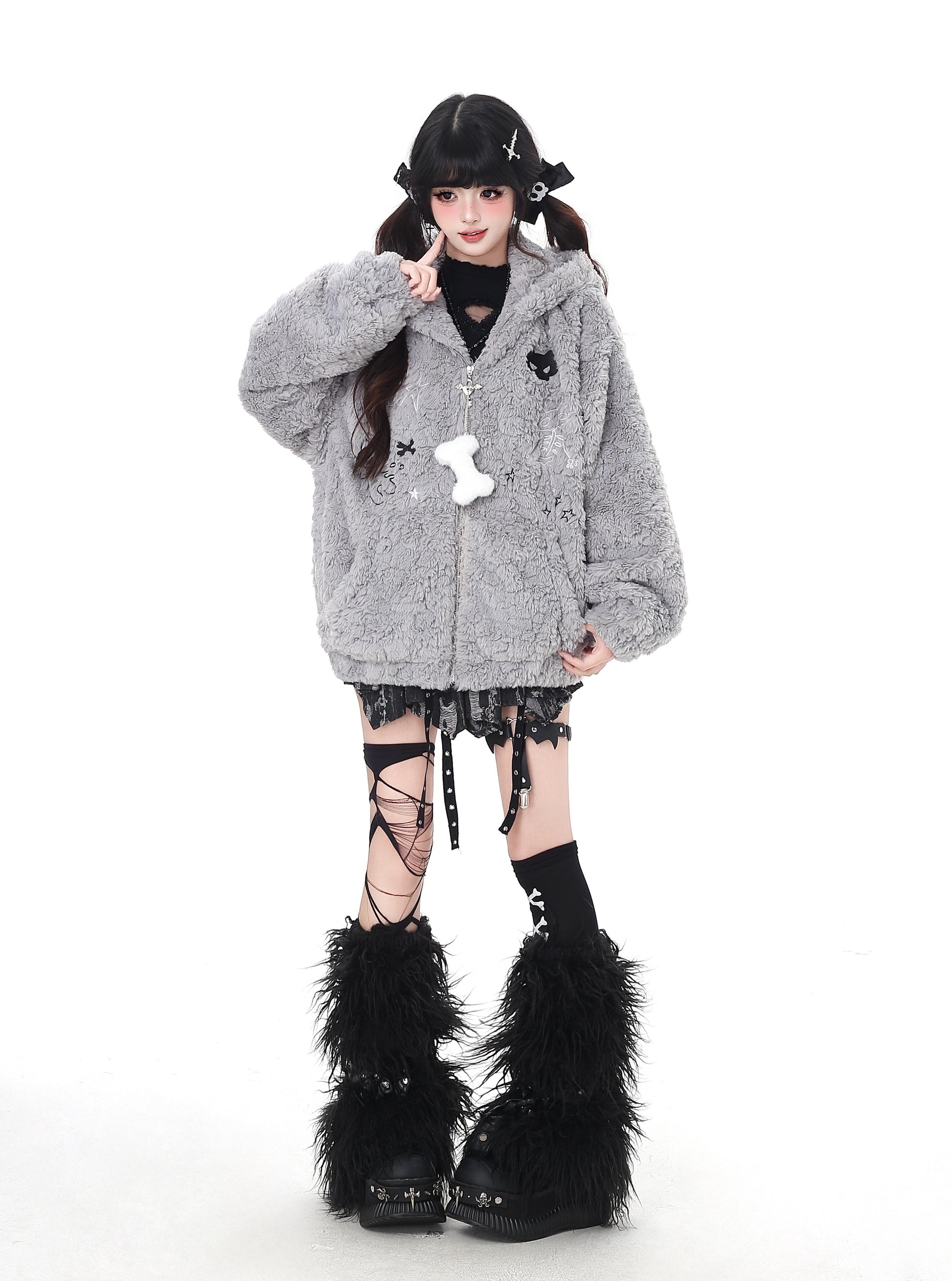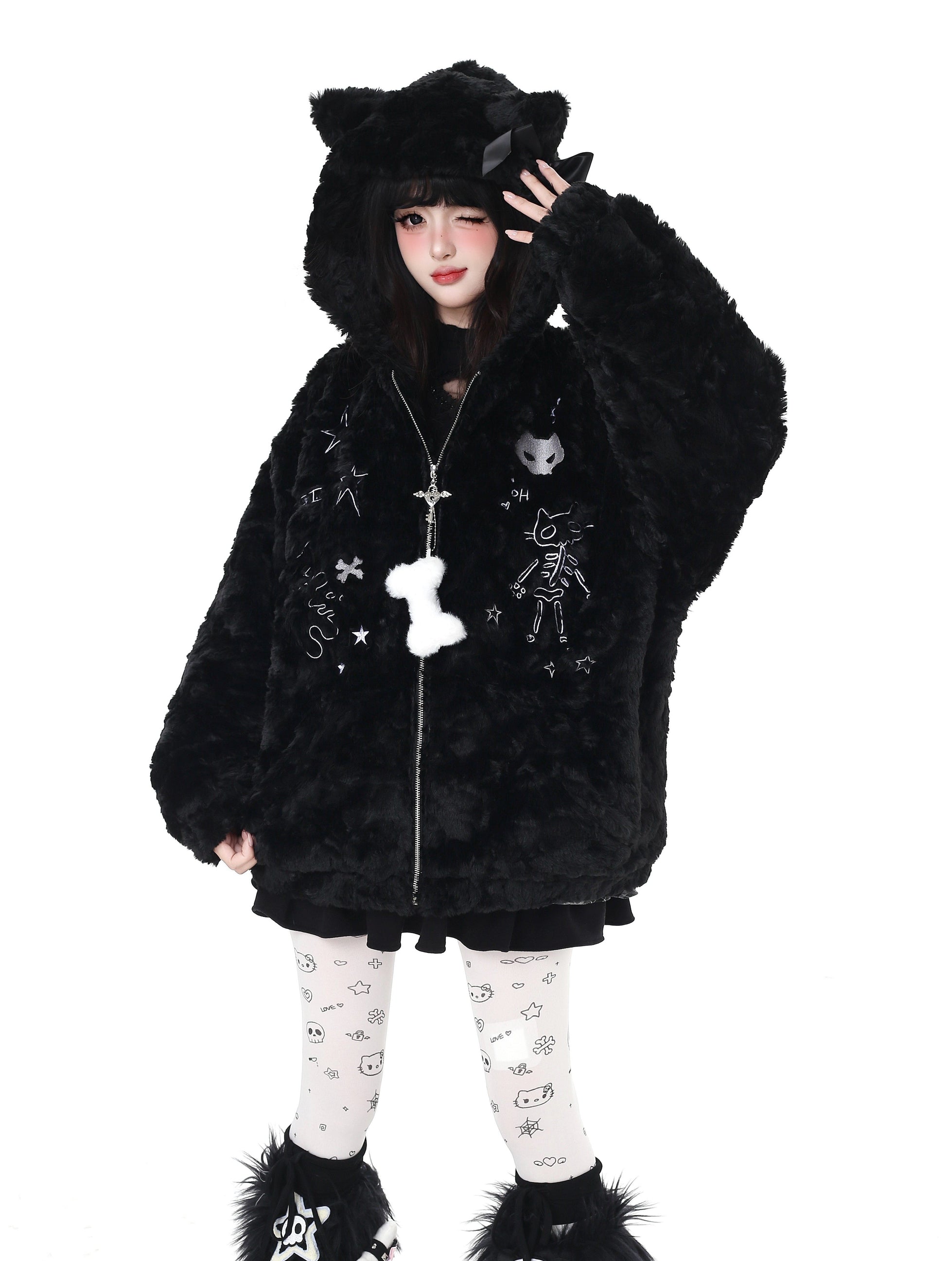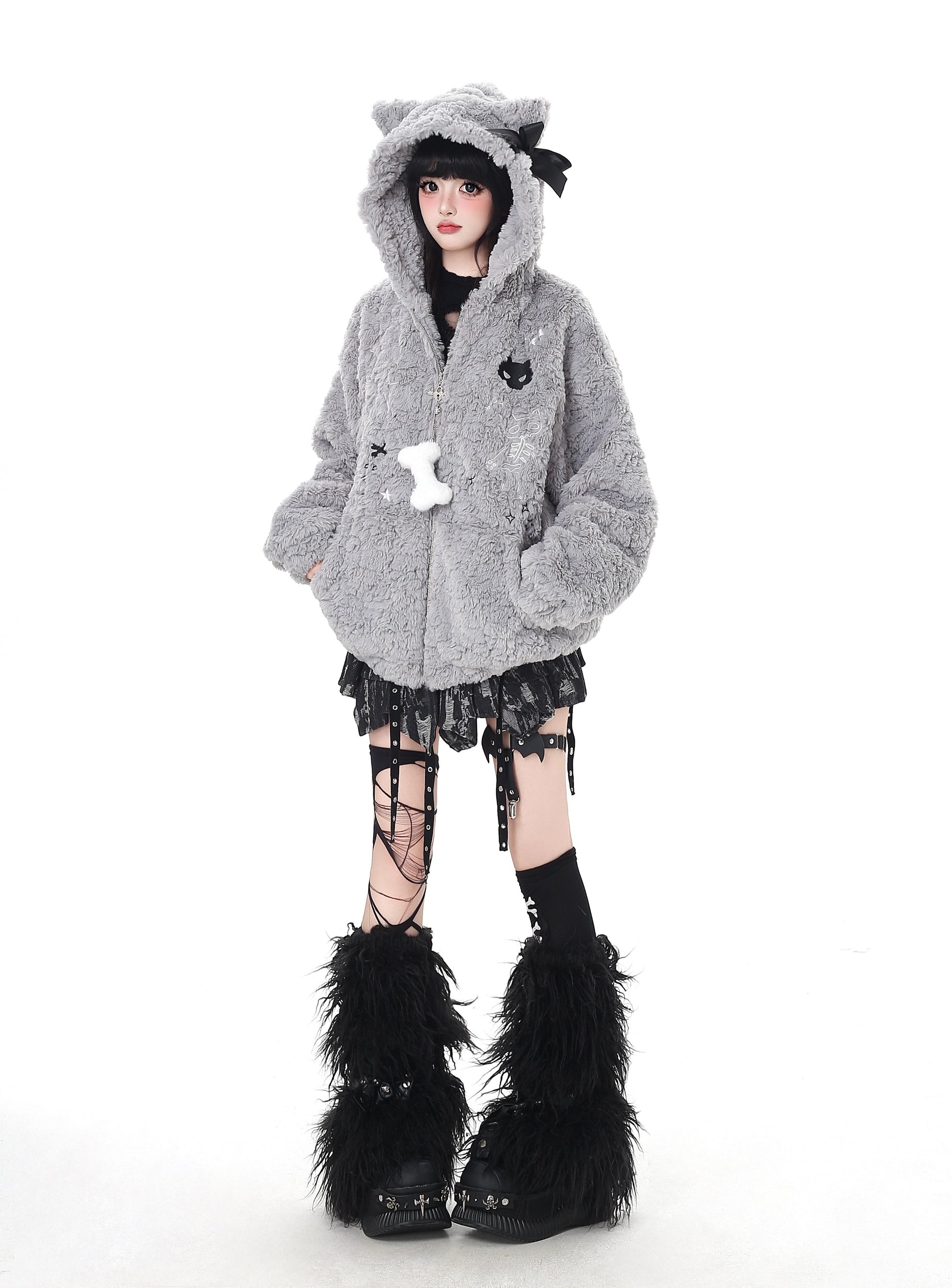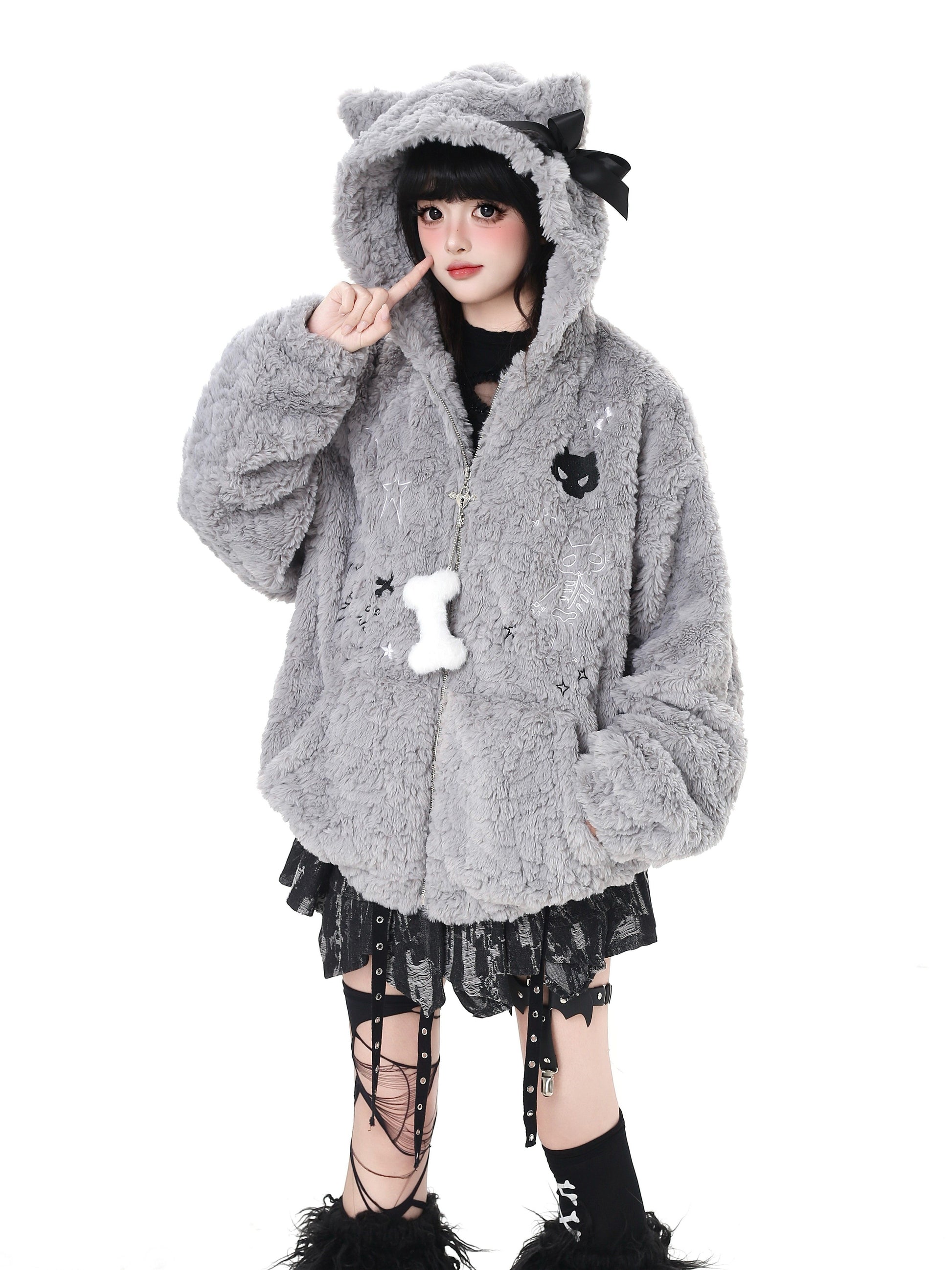 猫耳フード付き ルーズボアブルゾン|冬のゆる地雷アウター