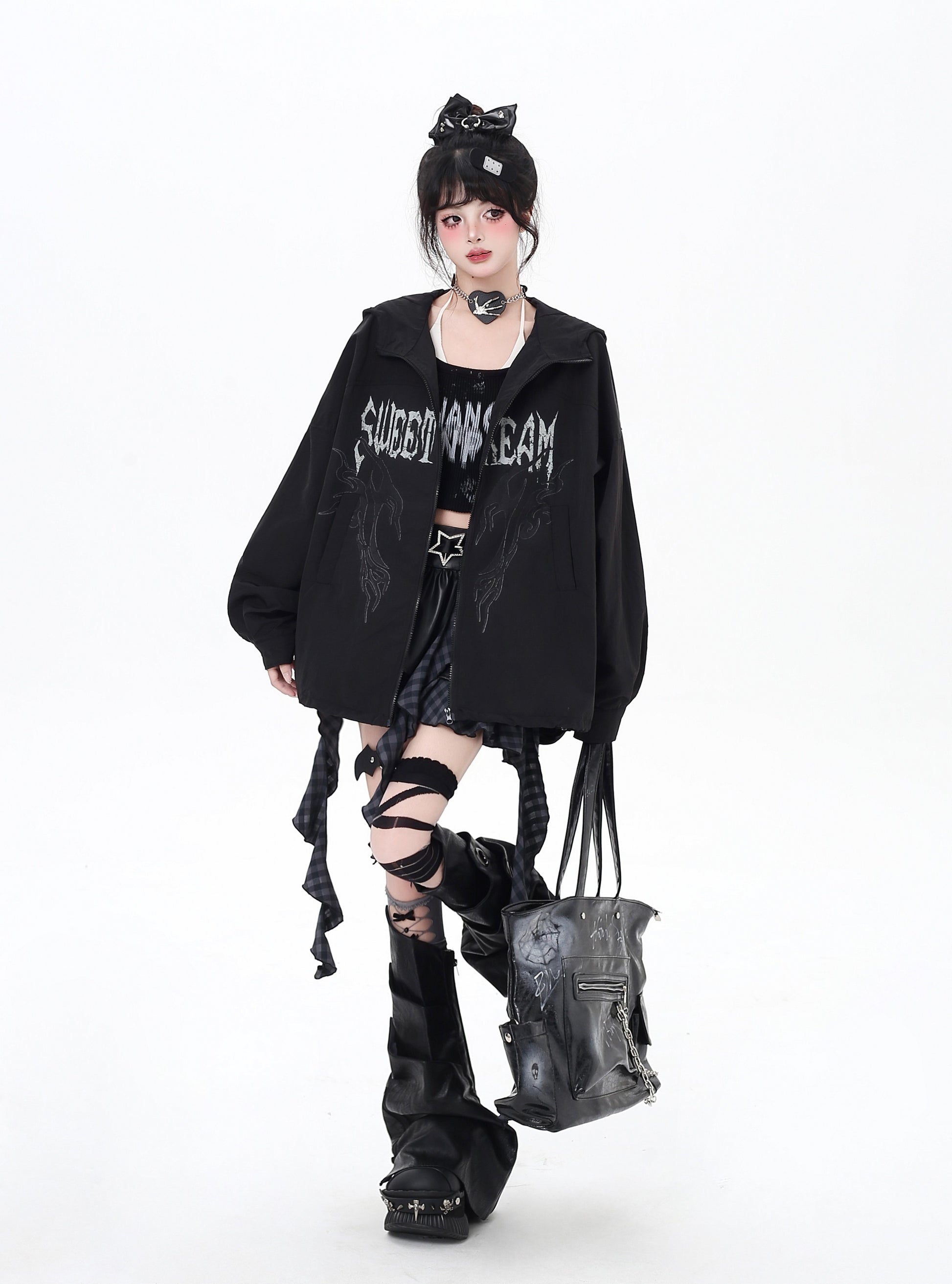 ゆるめシルエットで抜け感を演出する、#ゆる地雷 にぴったりのライトアウター🖤