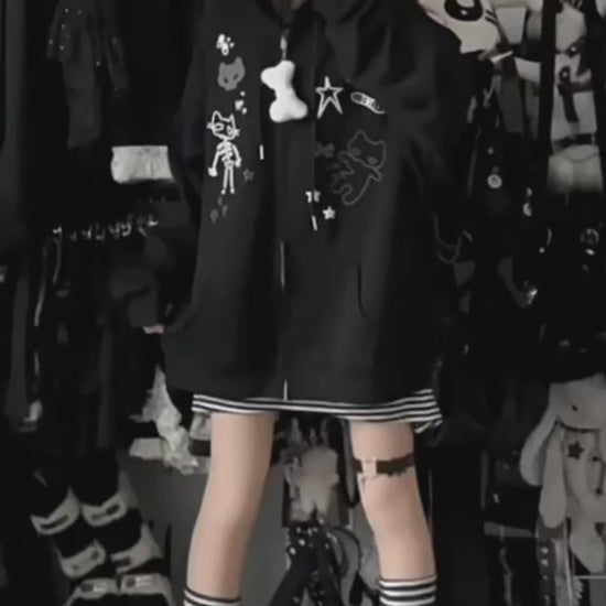 <tc>On Sale</tc>Loose-fitting hoodie with spider web and butterfly design