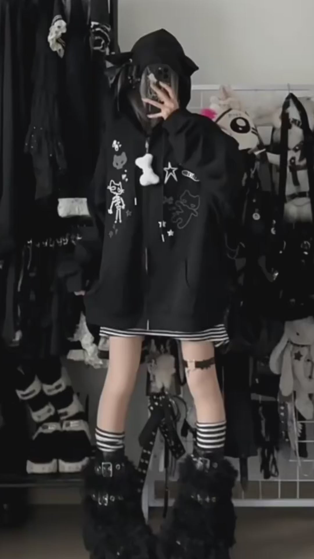 おうち系かわいい猫耳リボンゆるパーカー 秋のジップアップ