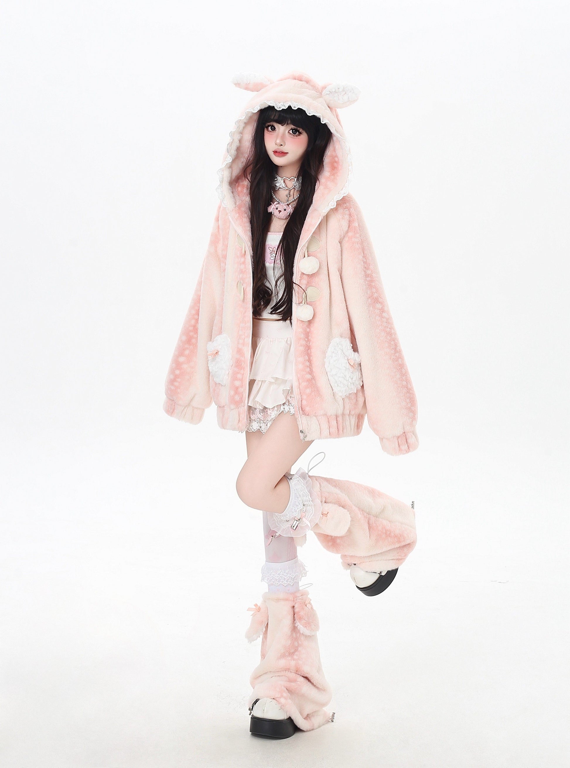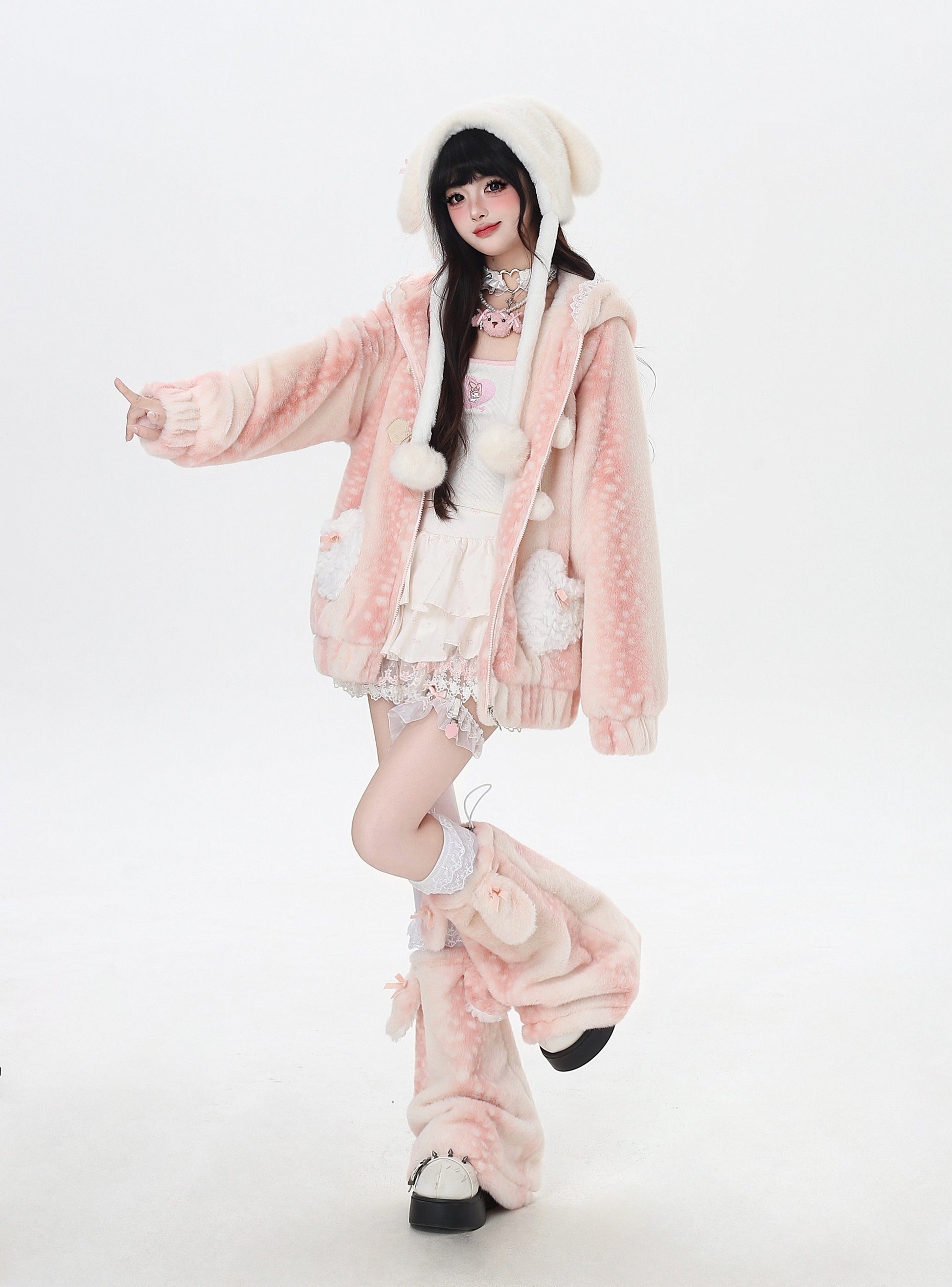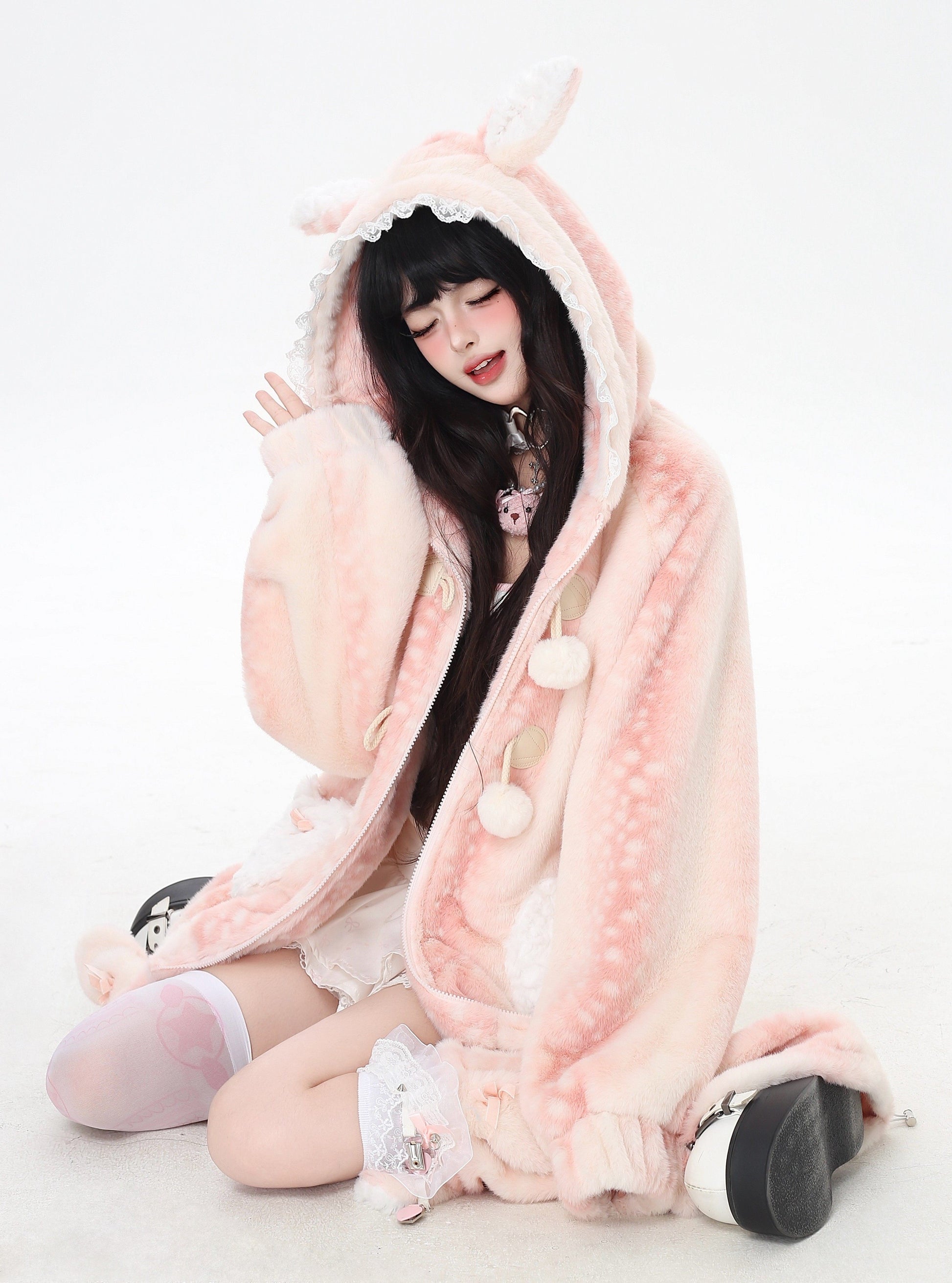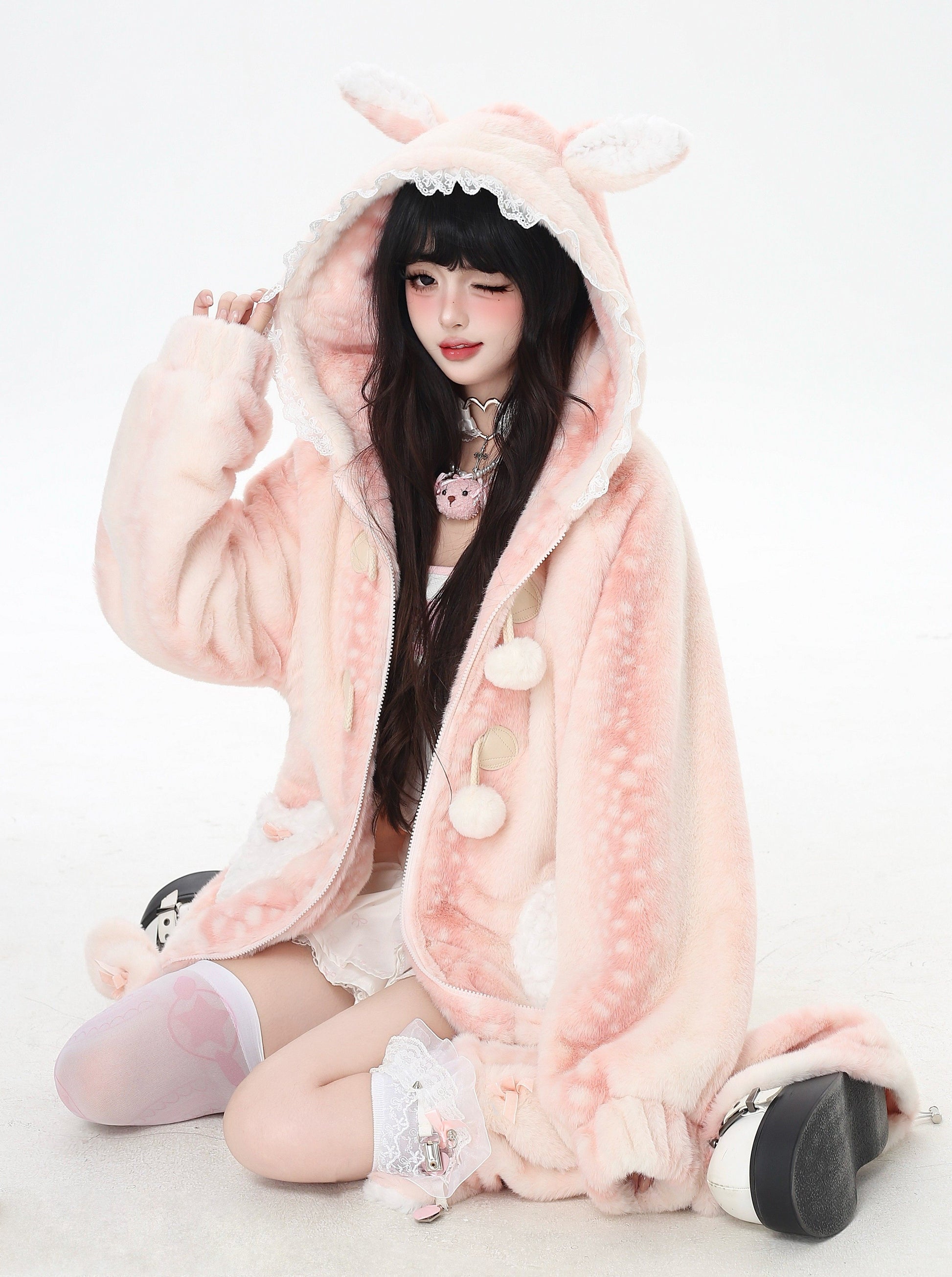立体バンビモチーフ ボアジャケット|冬の甘めサブカル