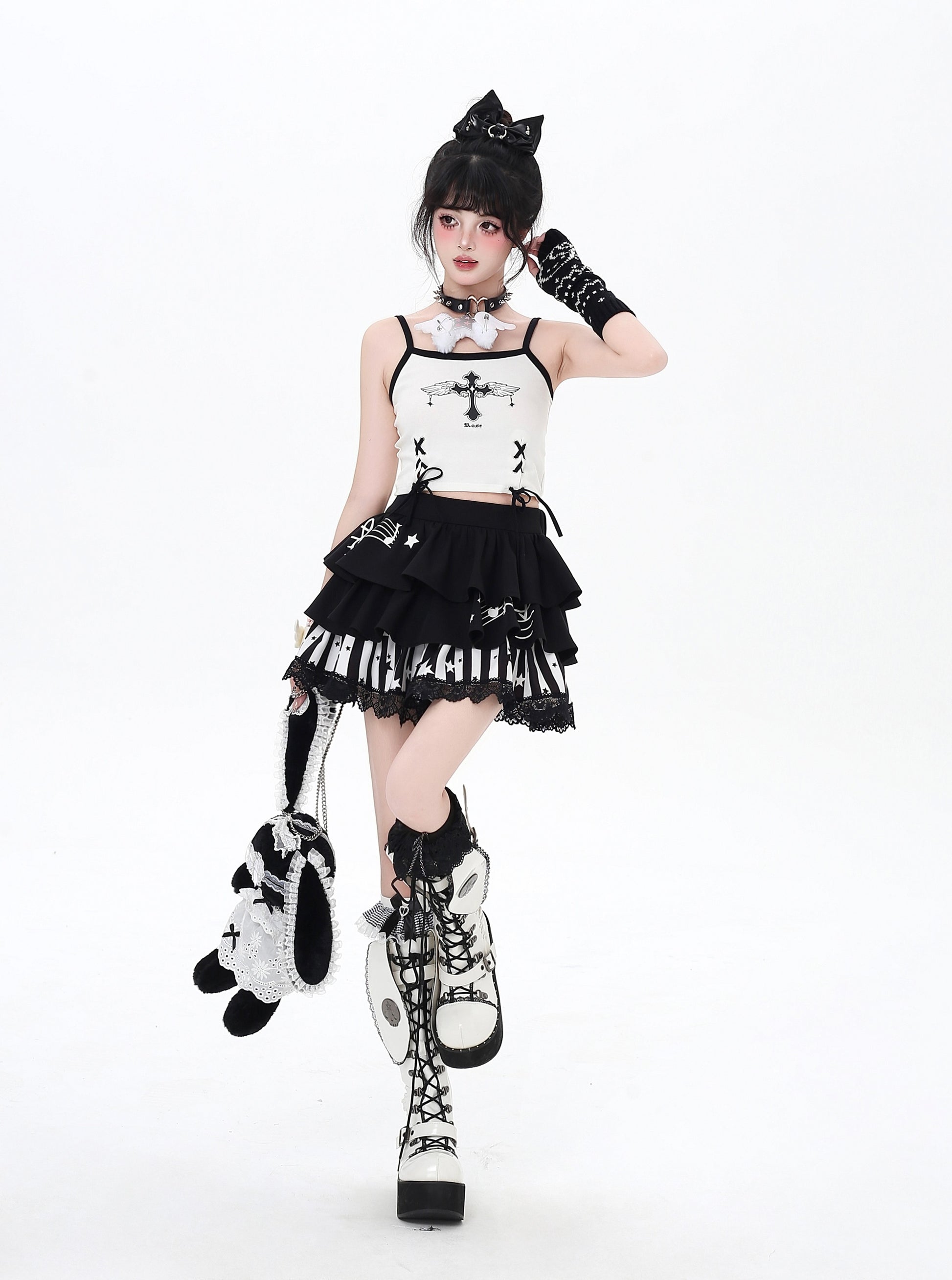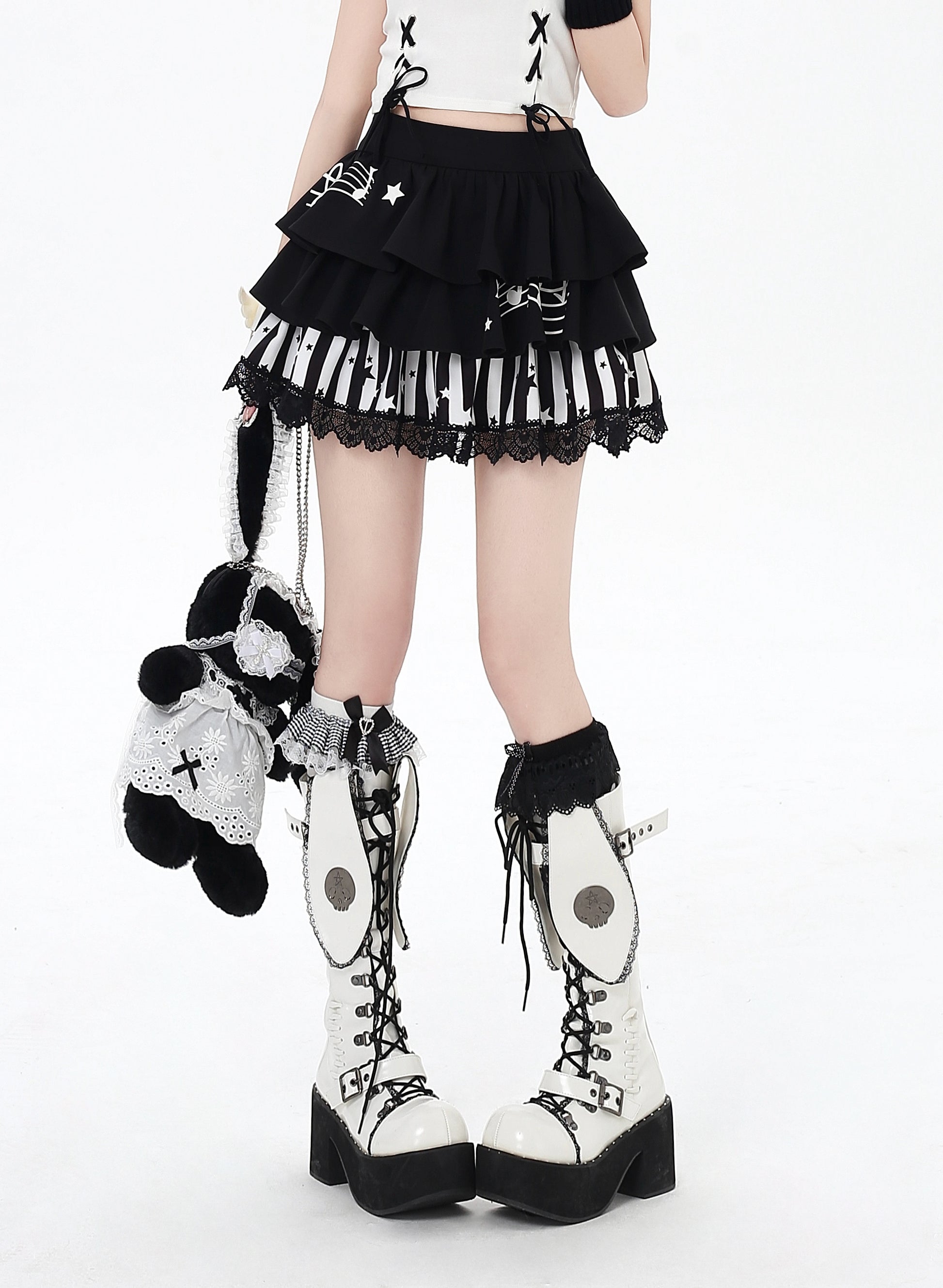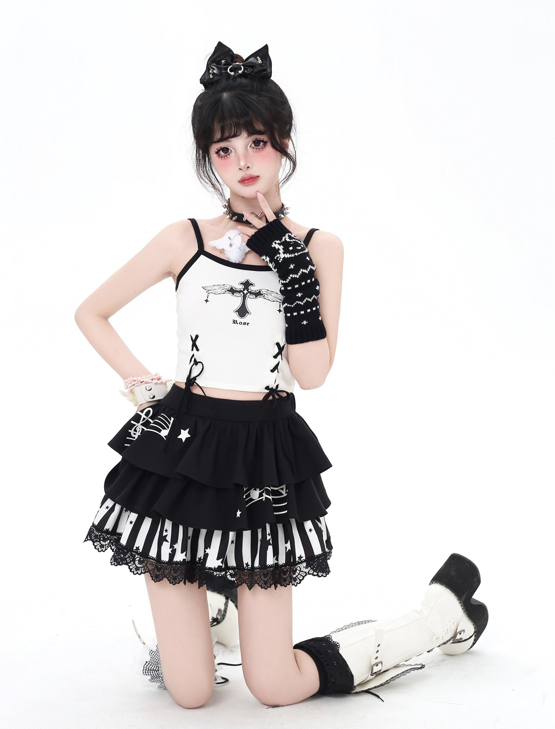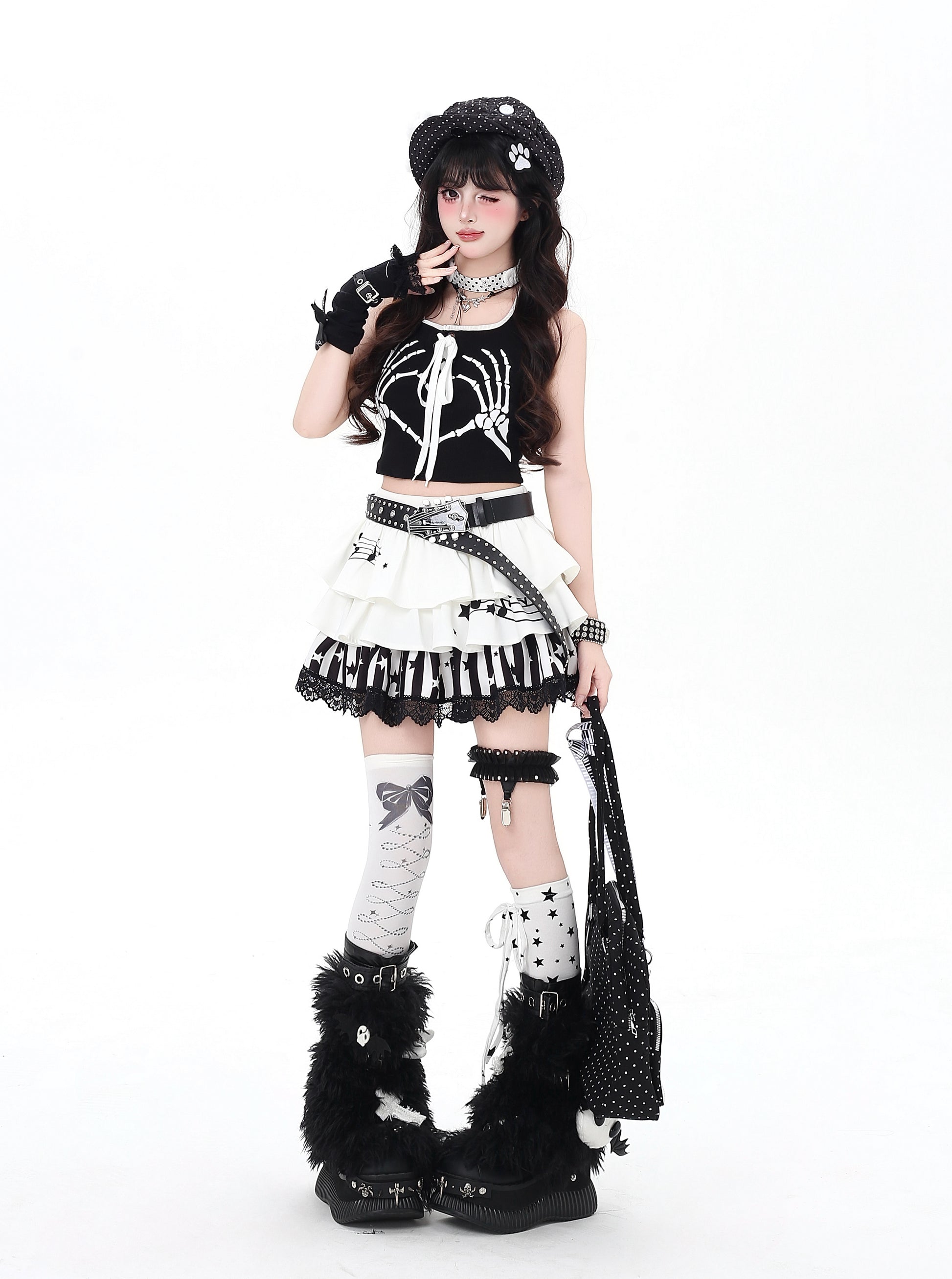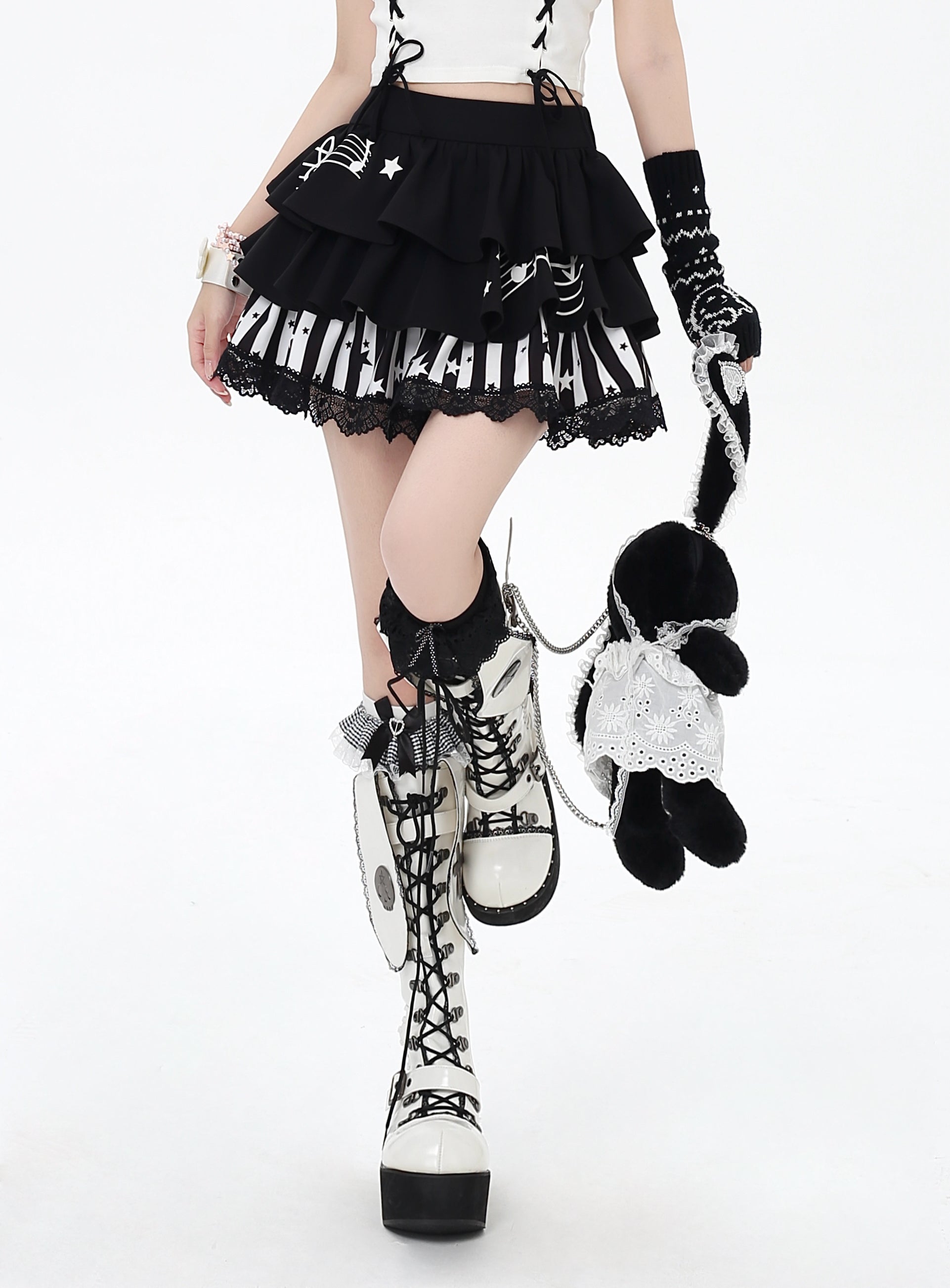 モノトーン音符プリーツスカート|ガーリーケーキライン