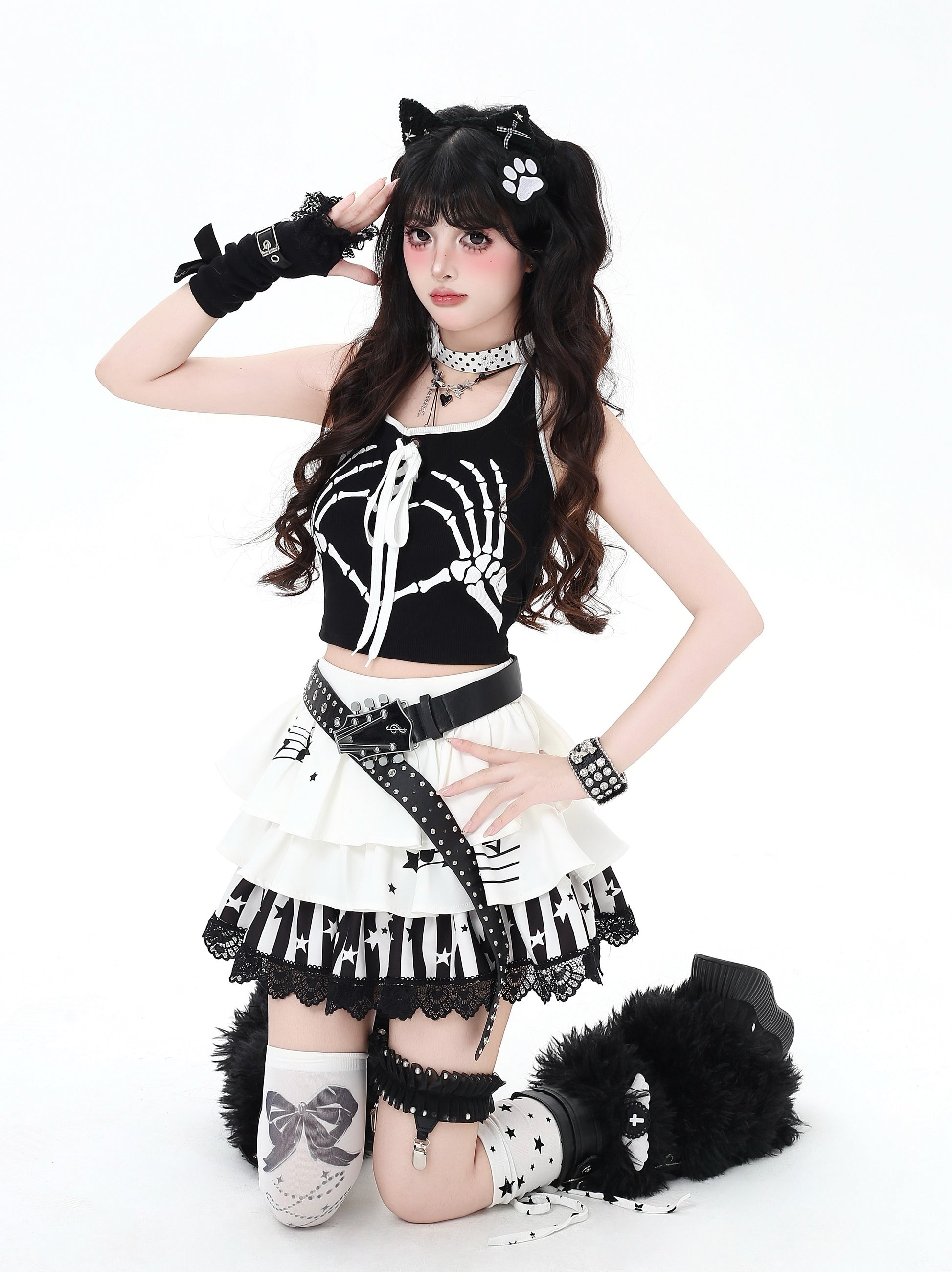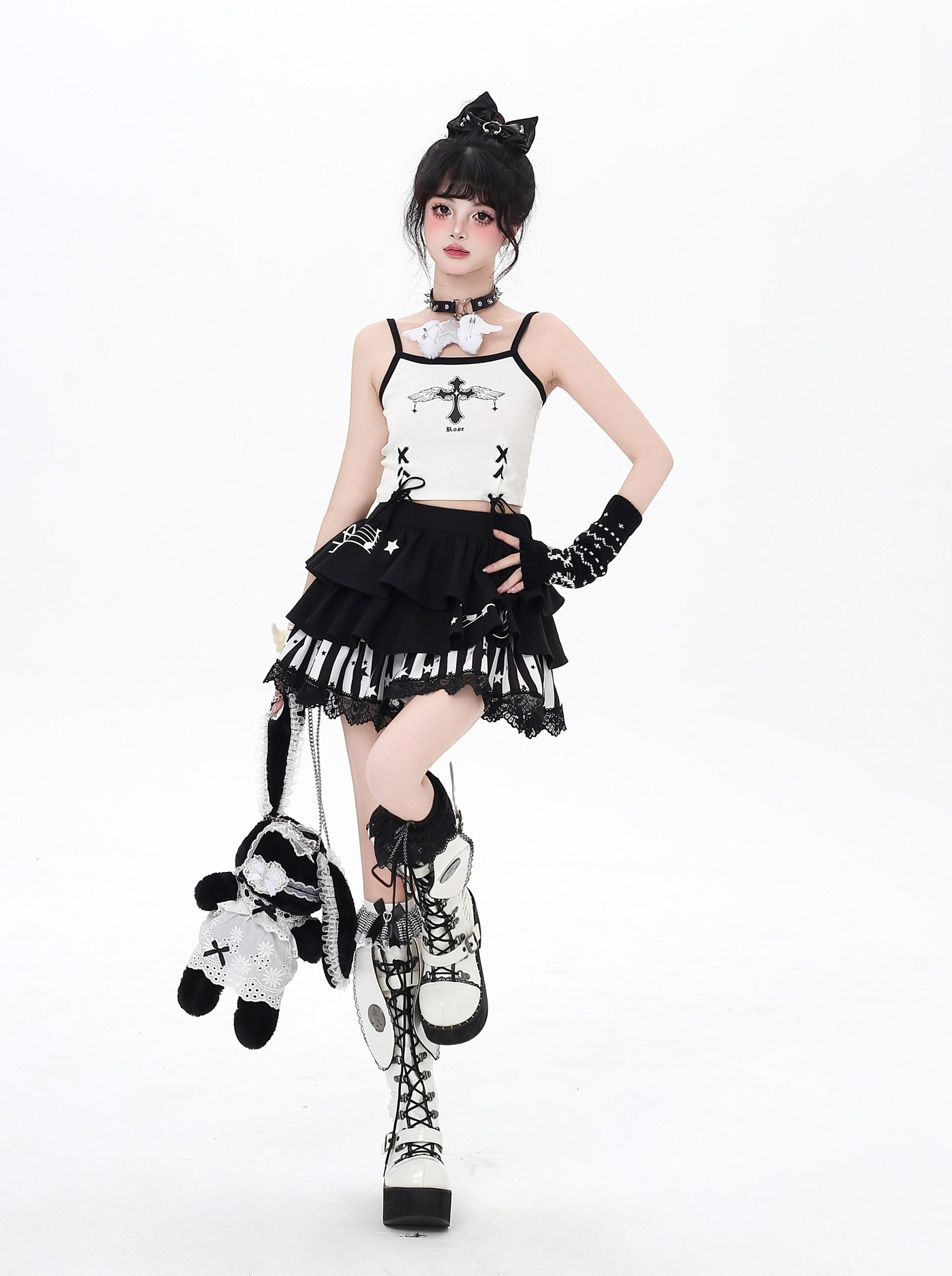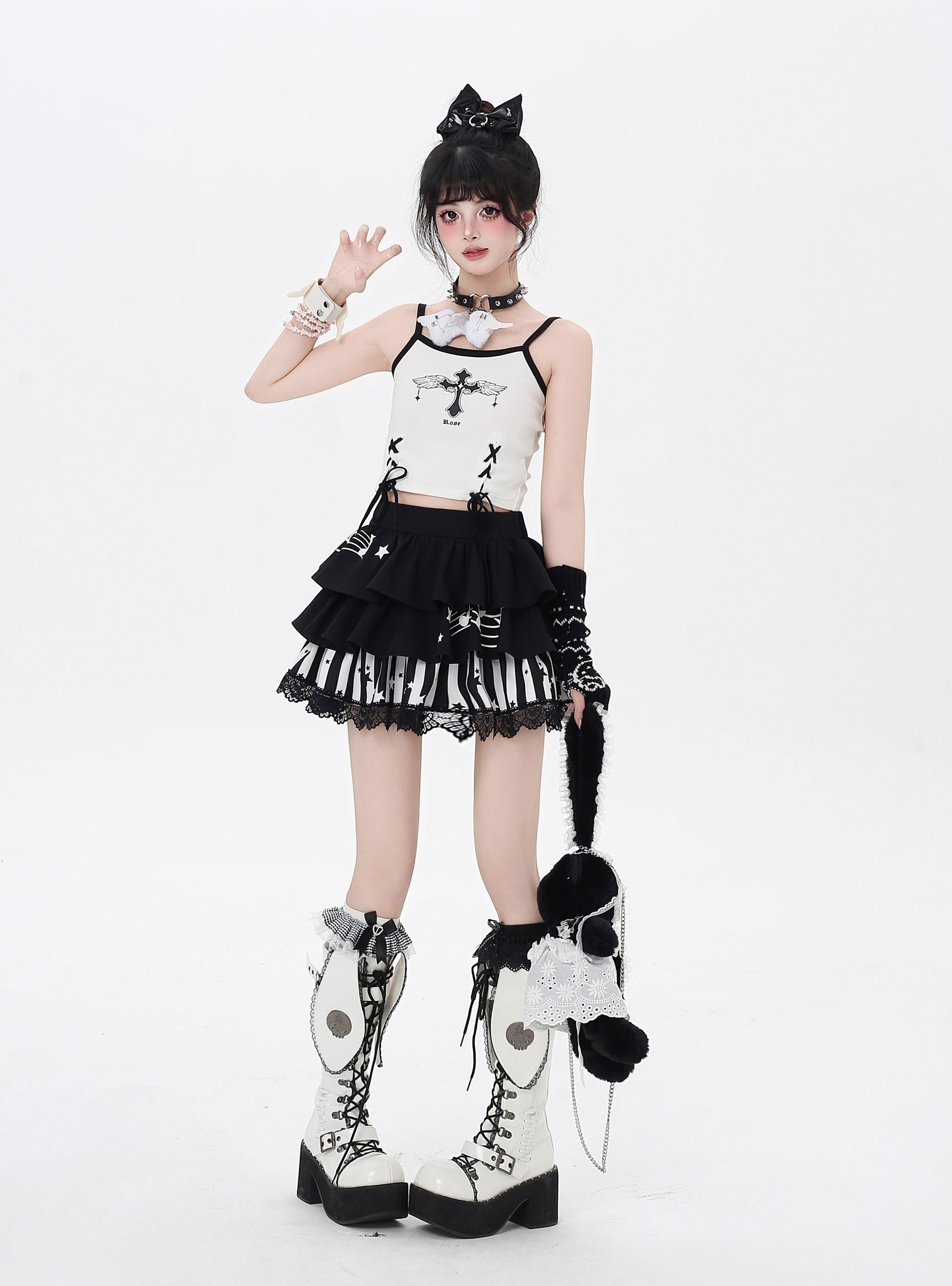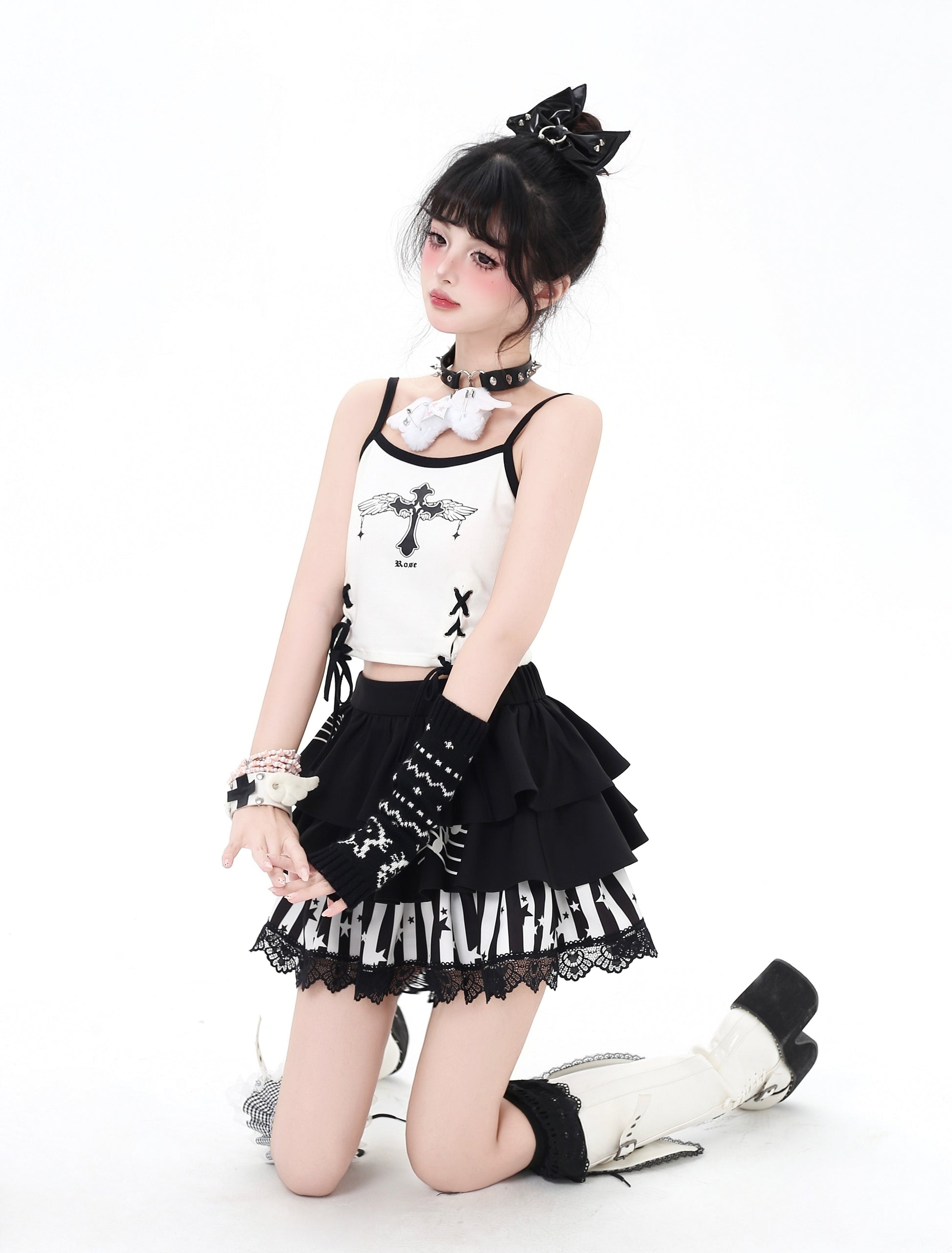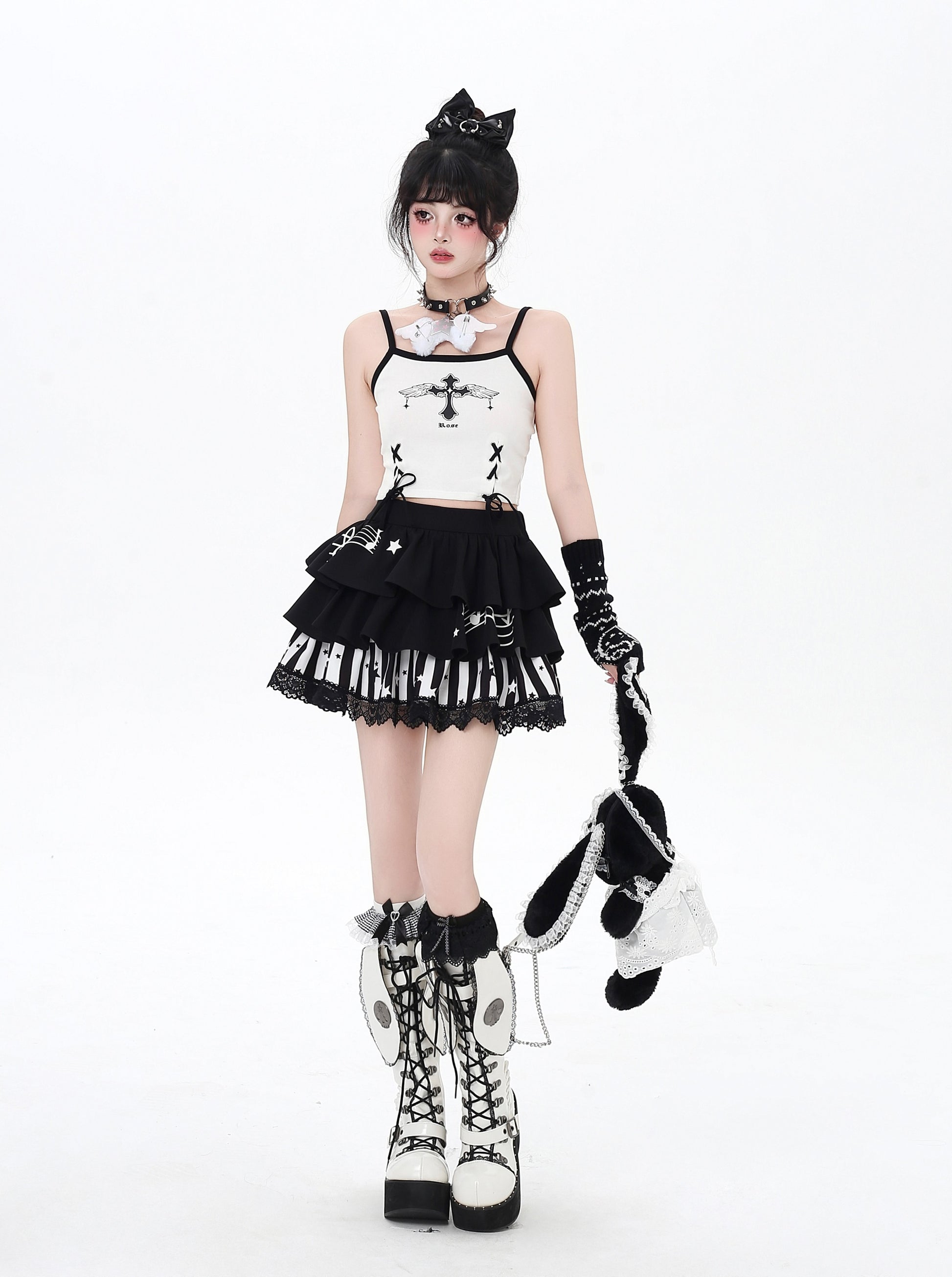 モノトーン音符プリーツスカート|ガーリーケーキライン