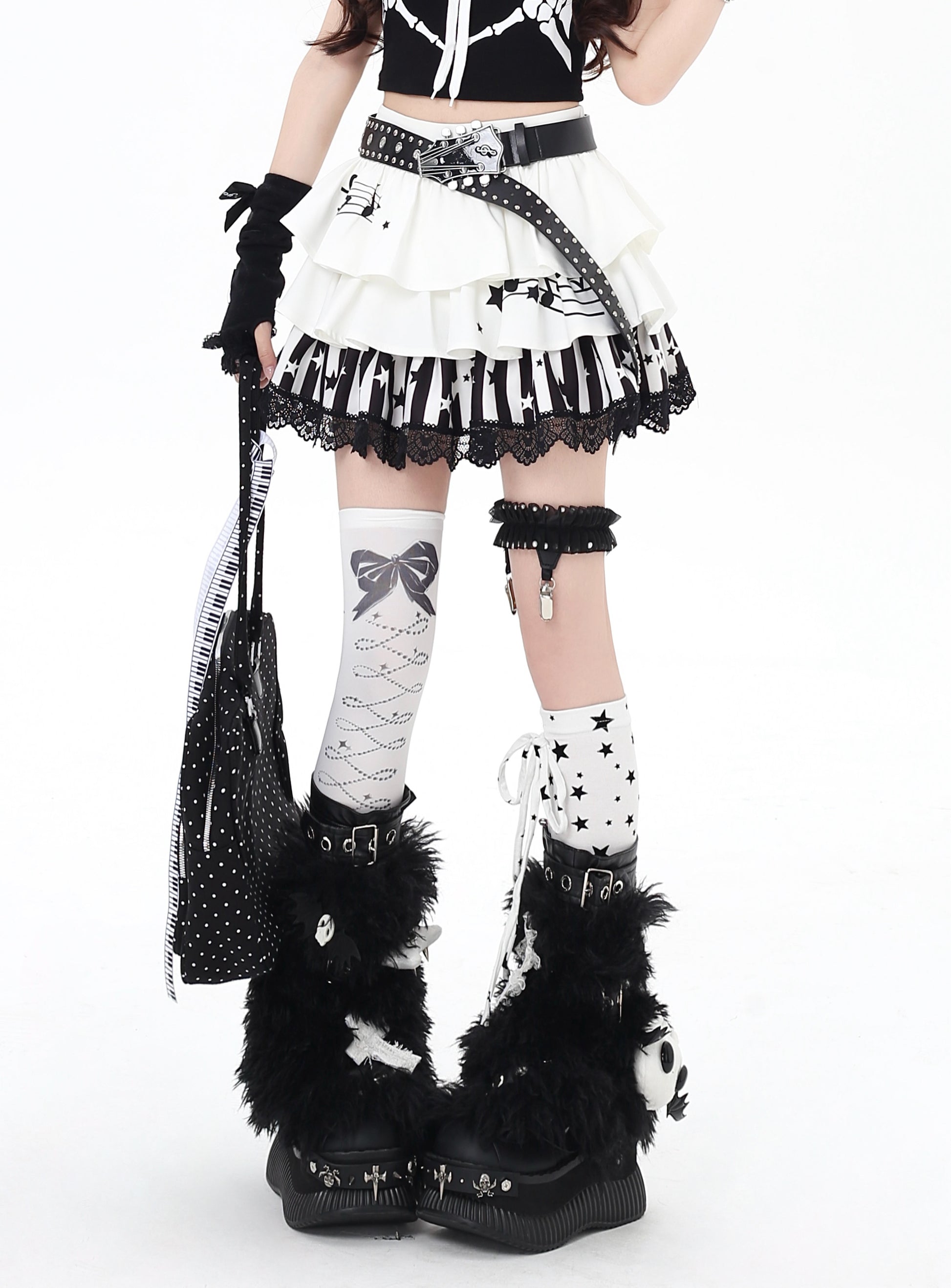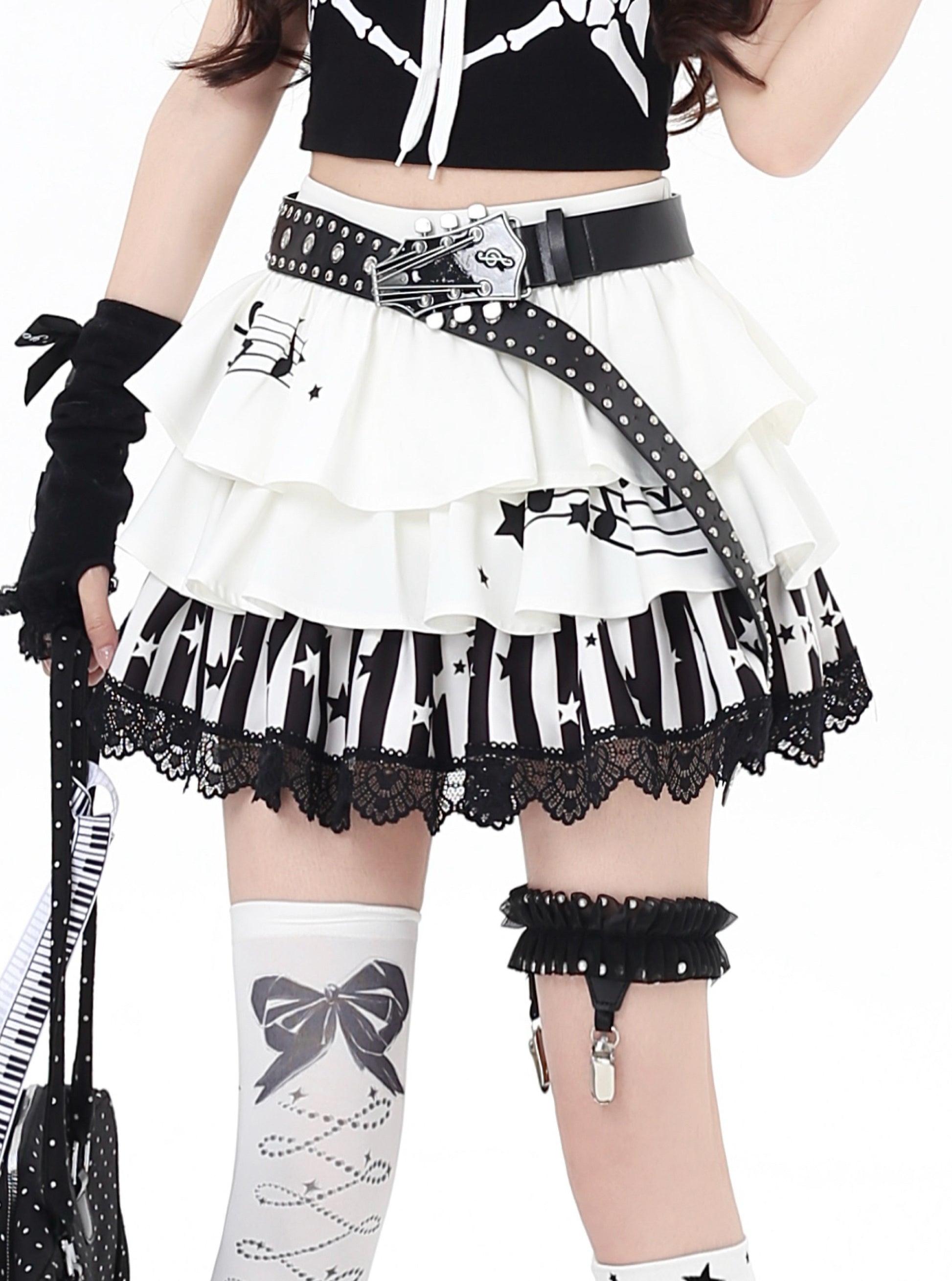 黒白の音符柄と繊細なレースがポイントのふんわりプリーツスカート🎼