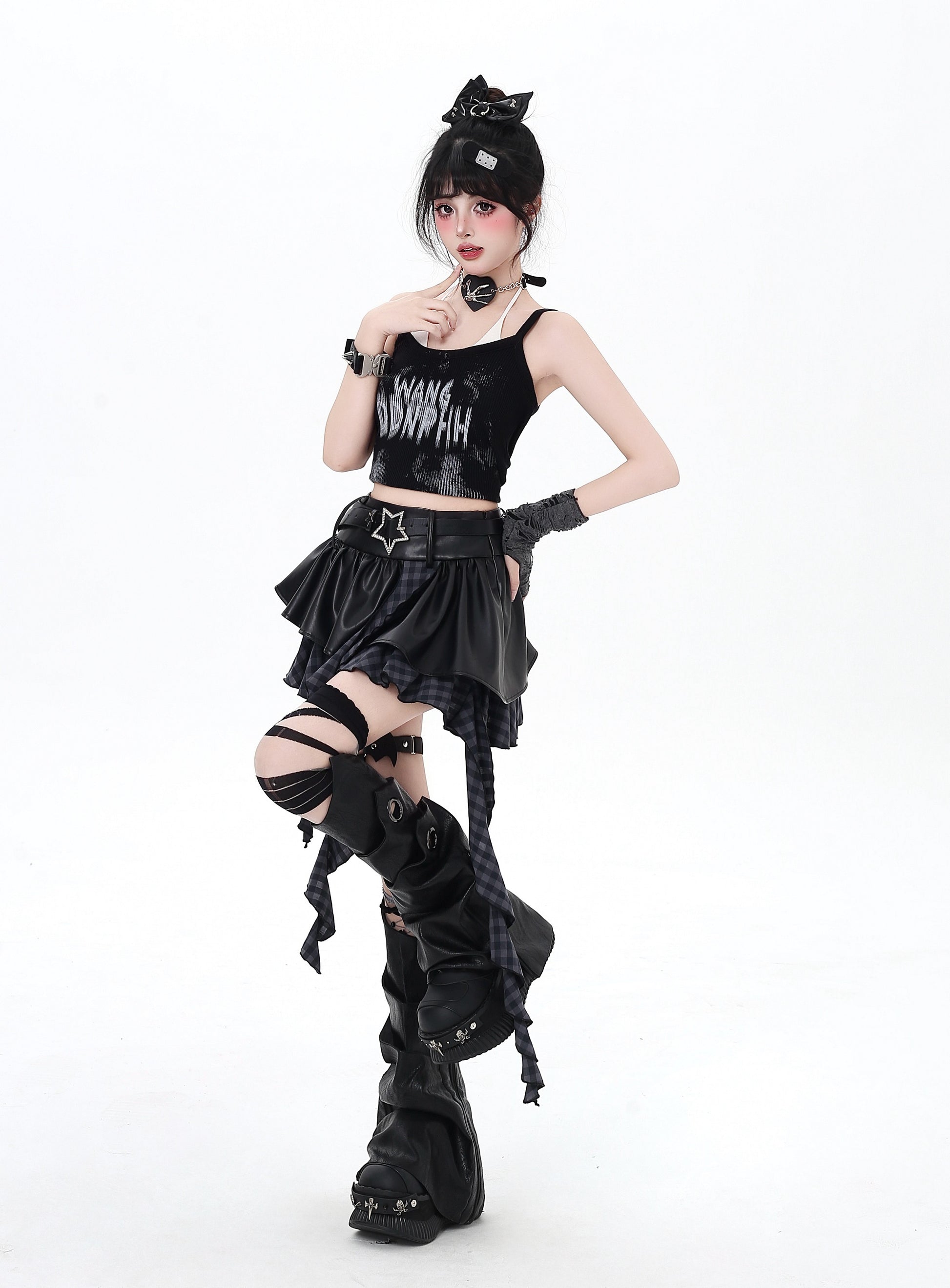 レース×クロス|パンク系細見えキャミソールトップス