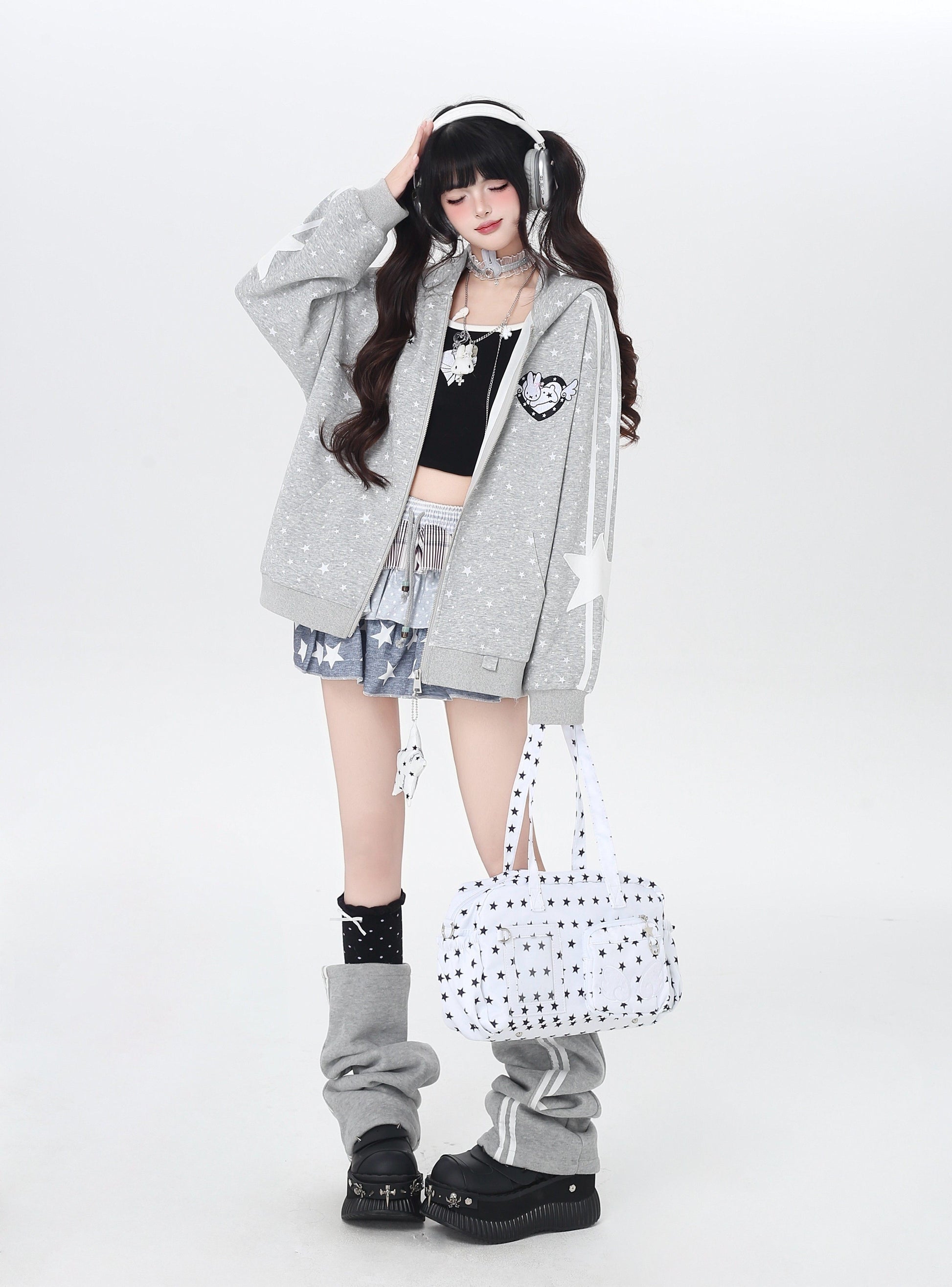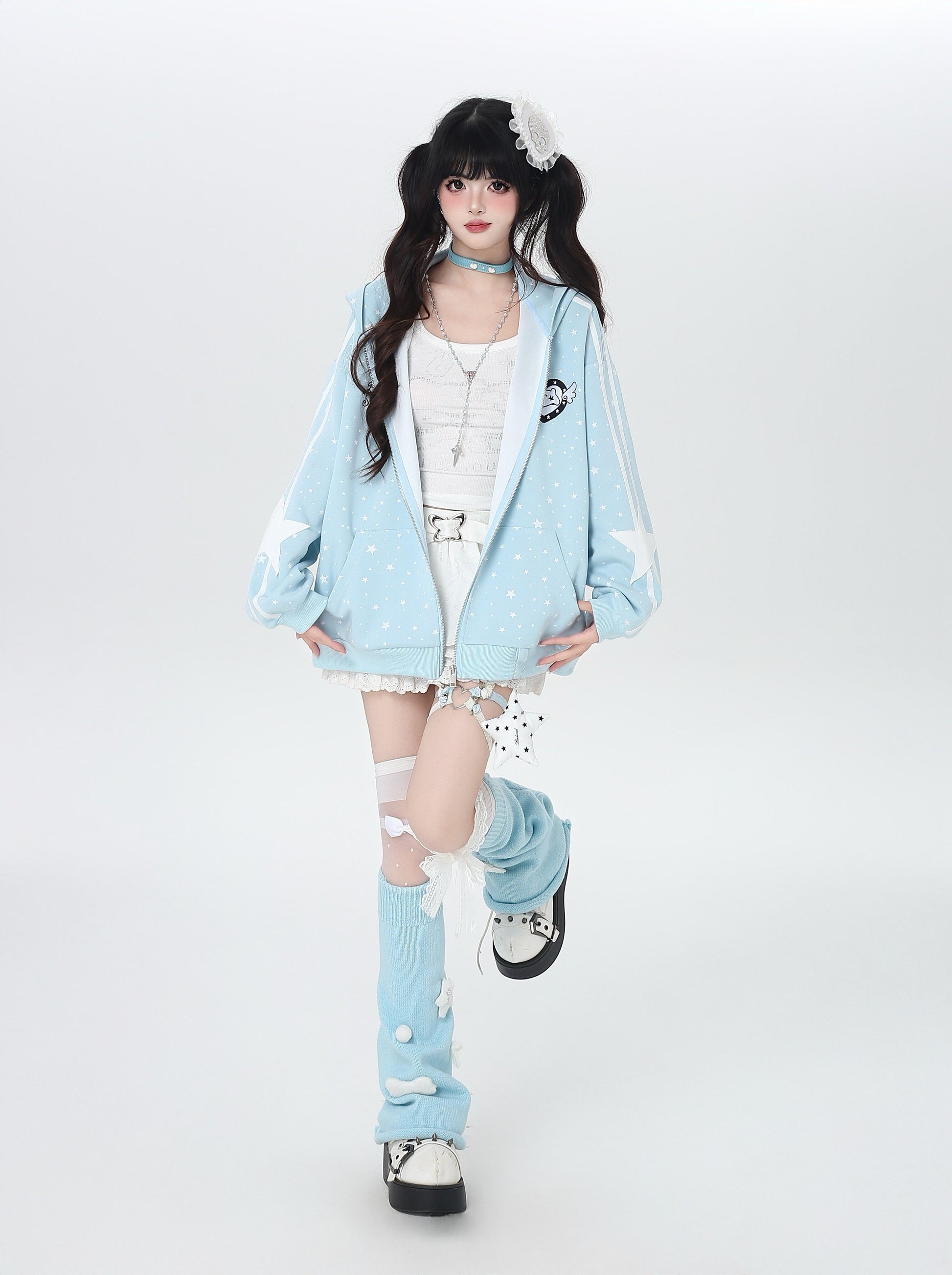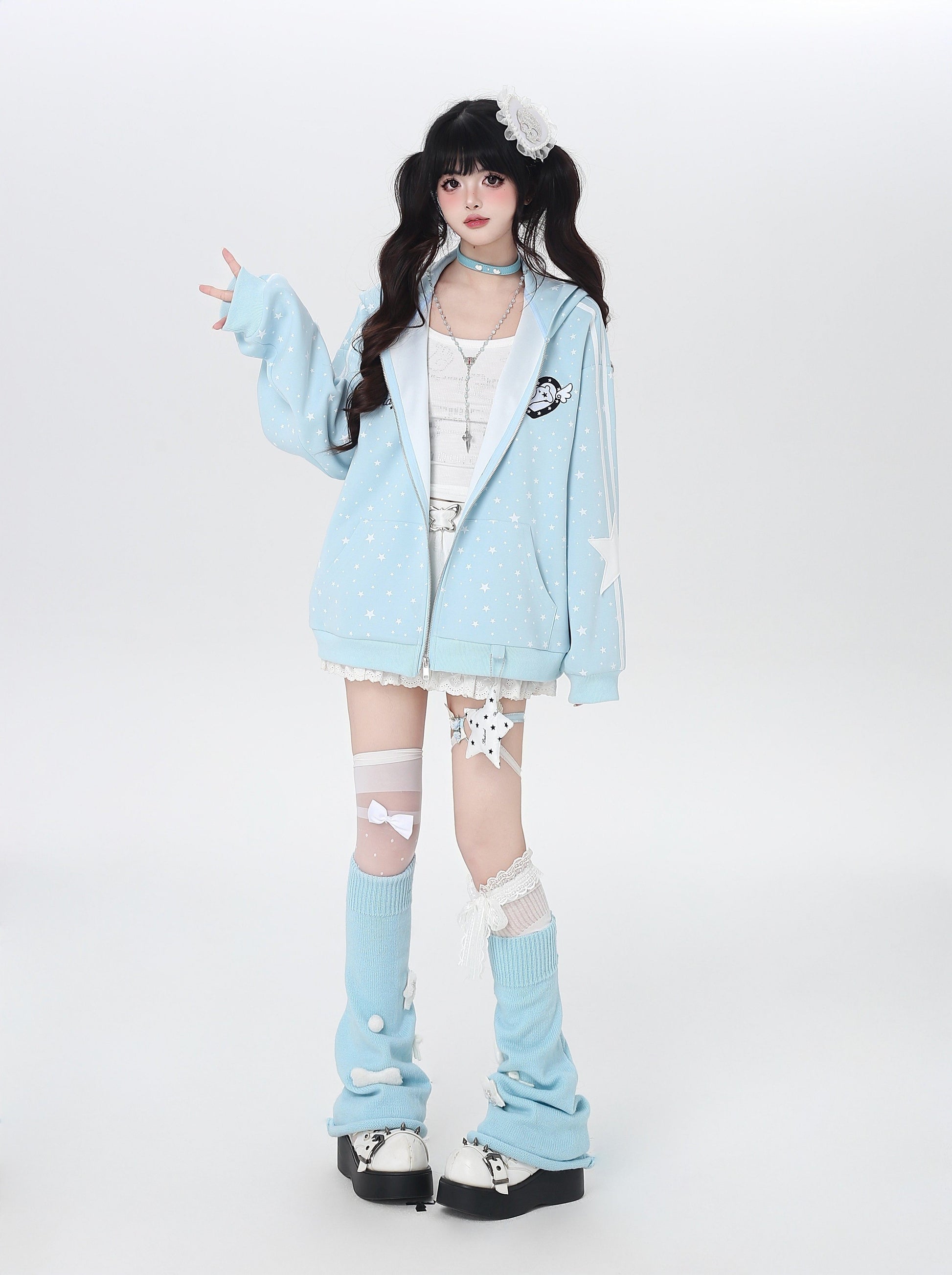 春先ゆる地雷風ネコ×星柄フードスウェット
