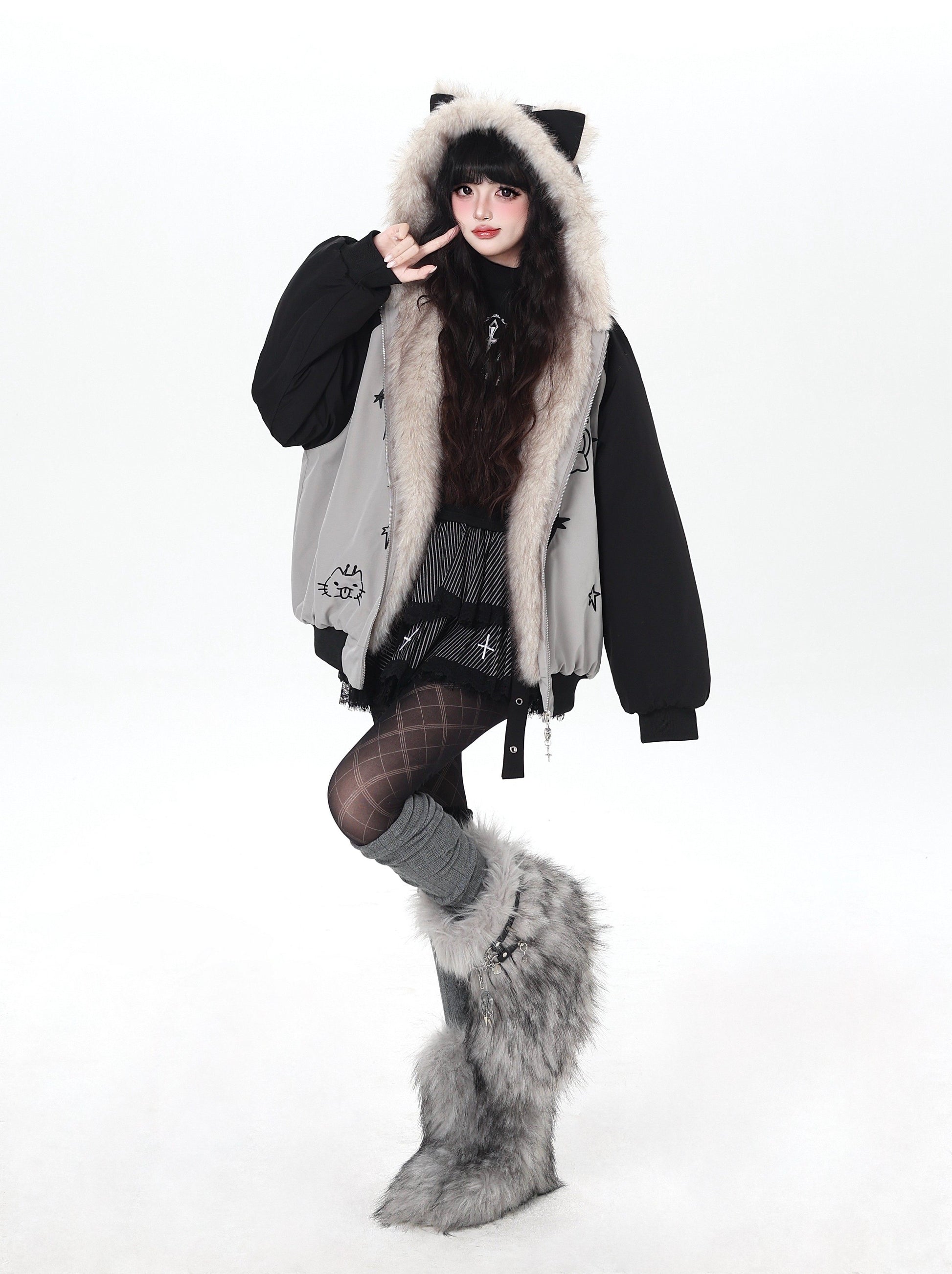 悪魔バニー×ふわもこムートン中綿コート