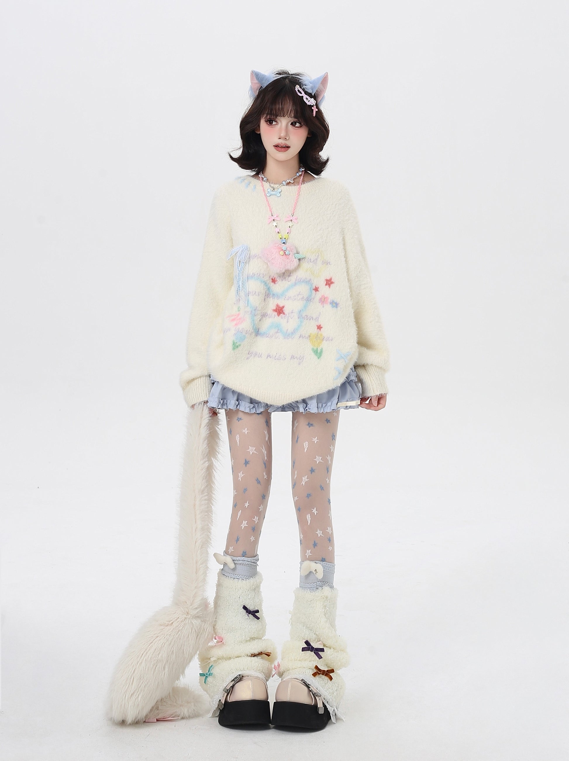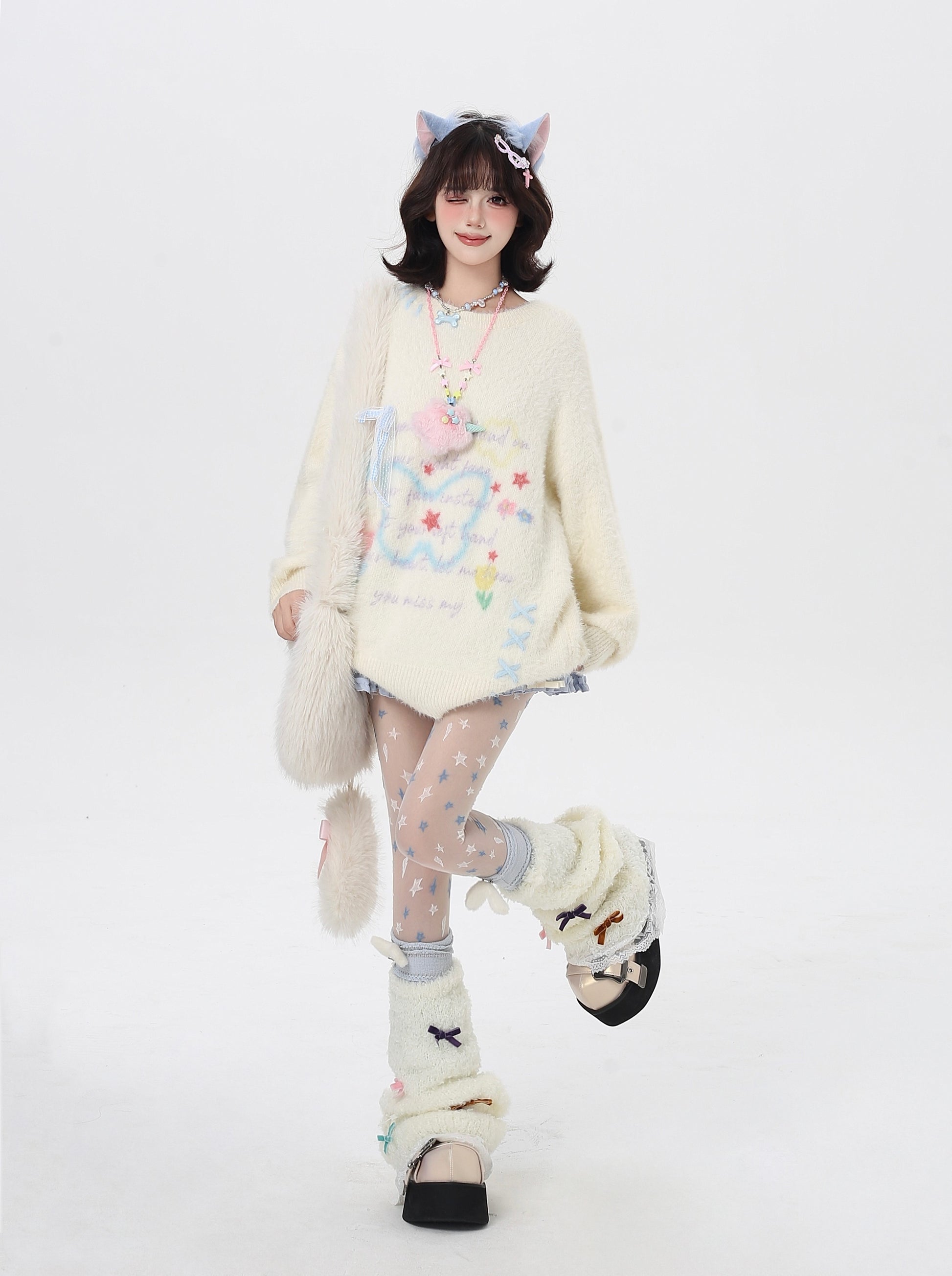 🎀リボンデザインゆるニット|ドーパミンガーリースタイル