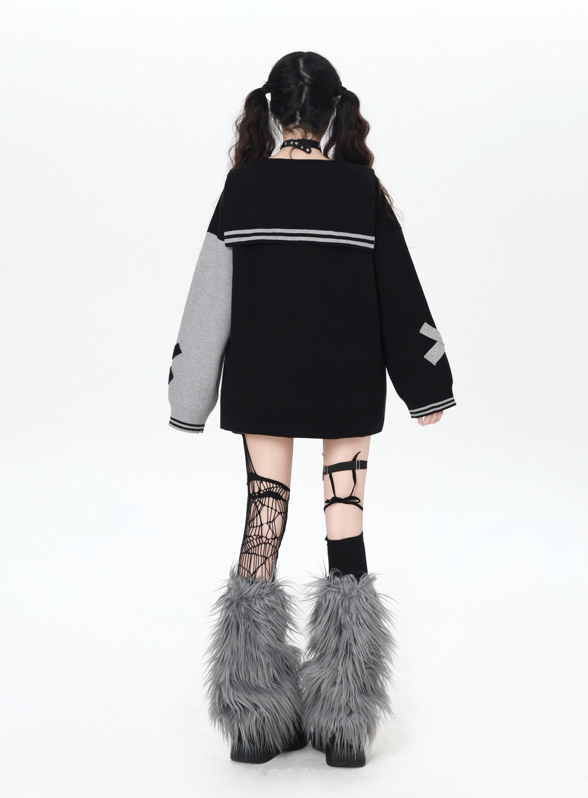ゆるギャル系 Vネック配色リボンニット♡秋冬甘辛ミックス