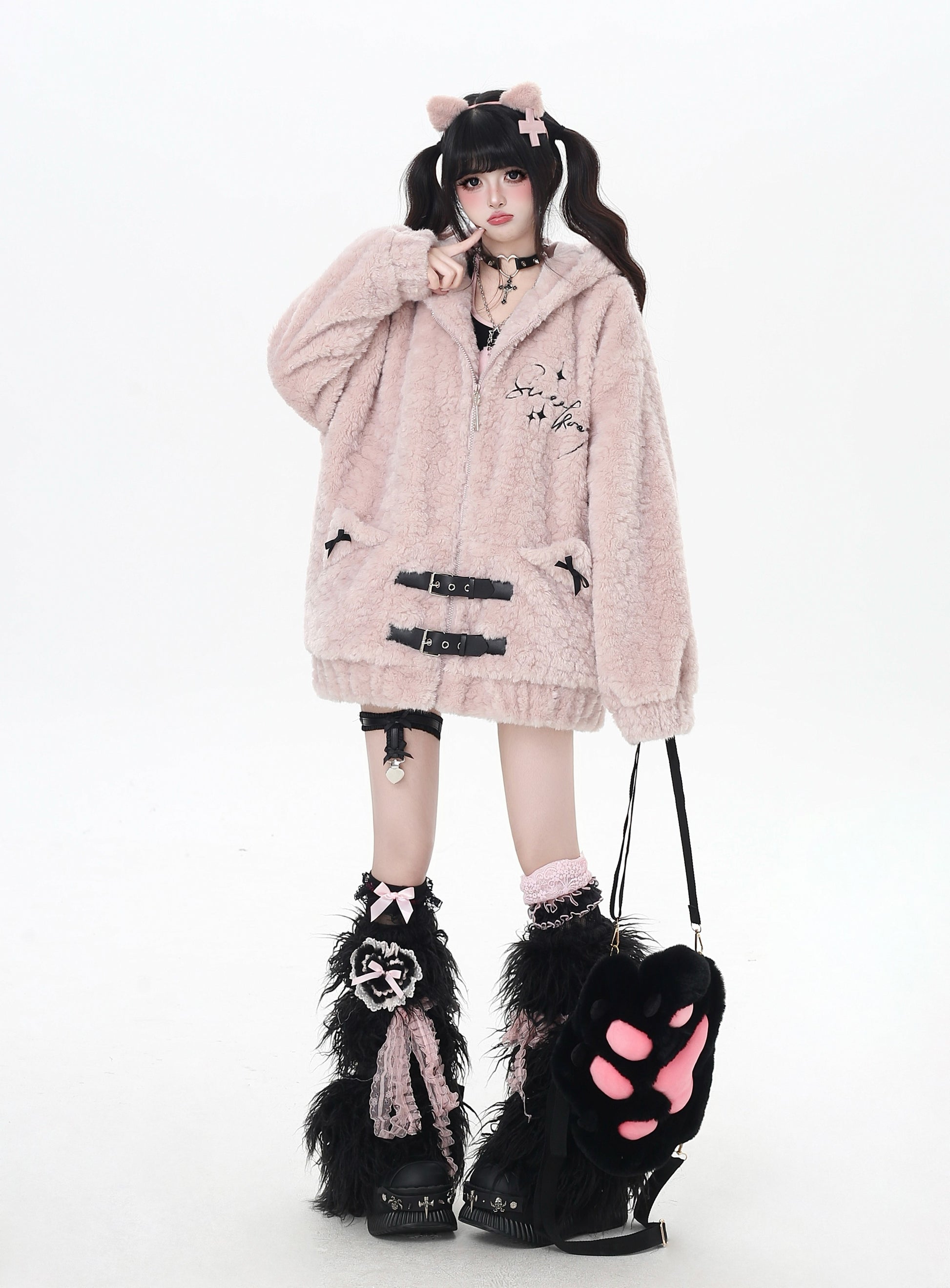 ゆる地雷ふわもこ猫耳スエード中綿アウター
