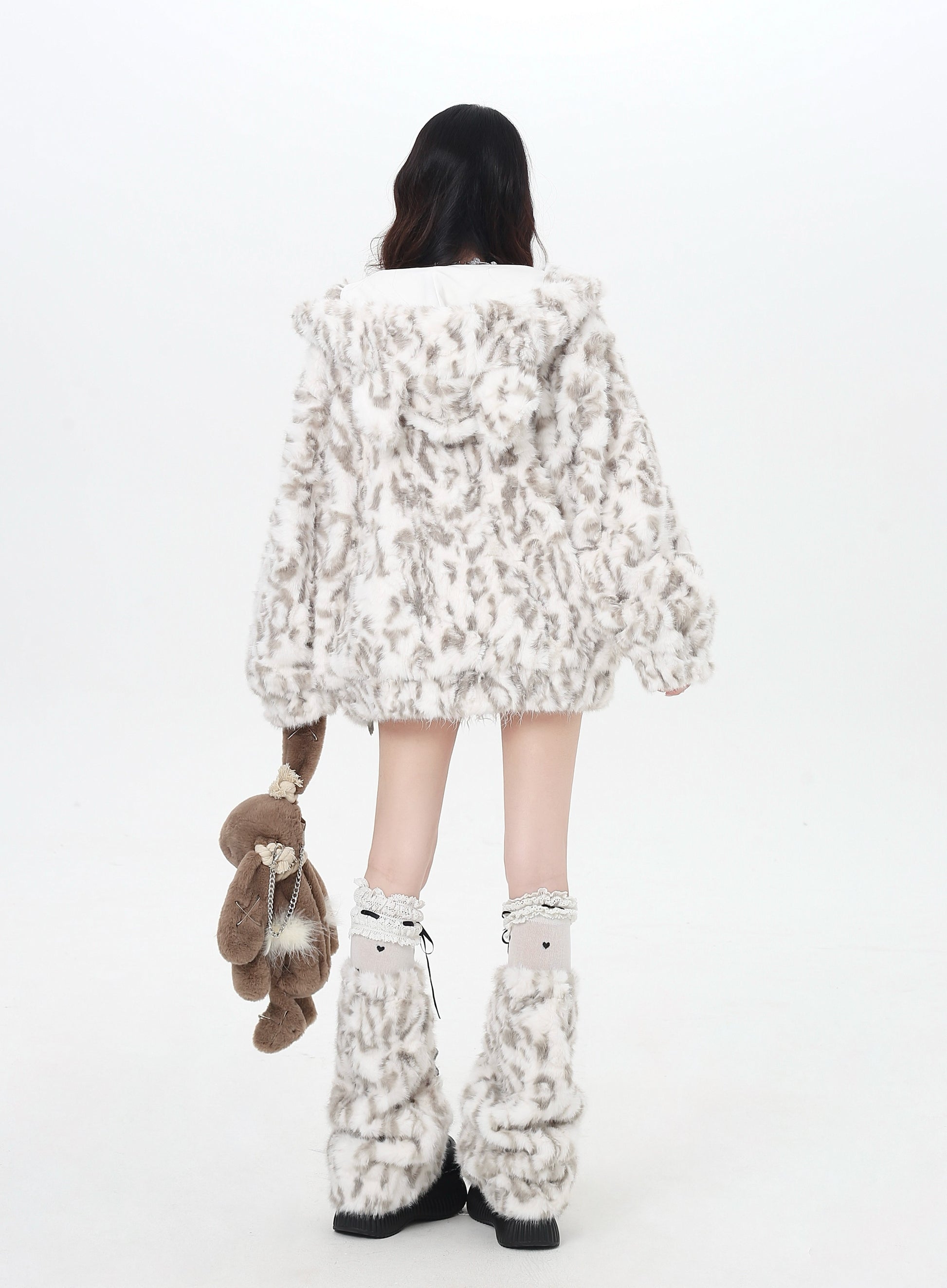 レオパ柄の刺繍がアクセントになった、もこもこボアのあったかアウター。